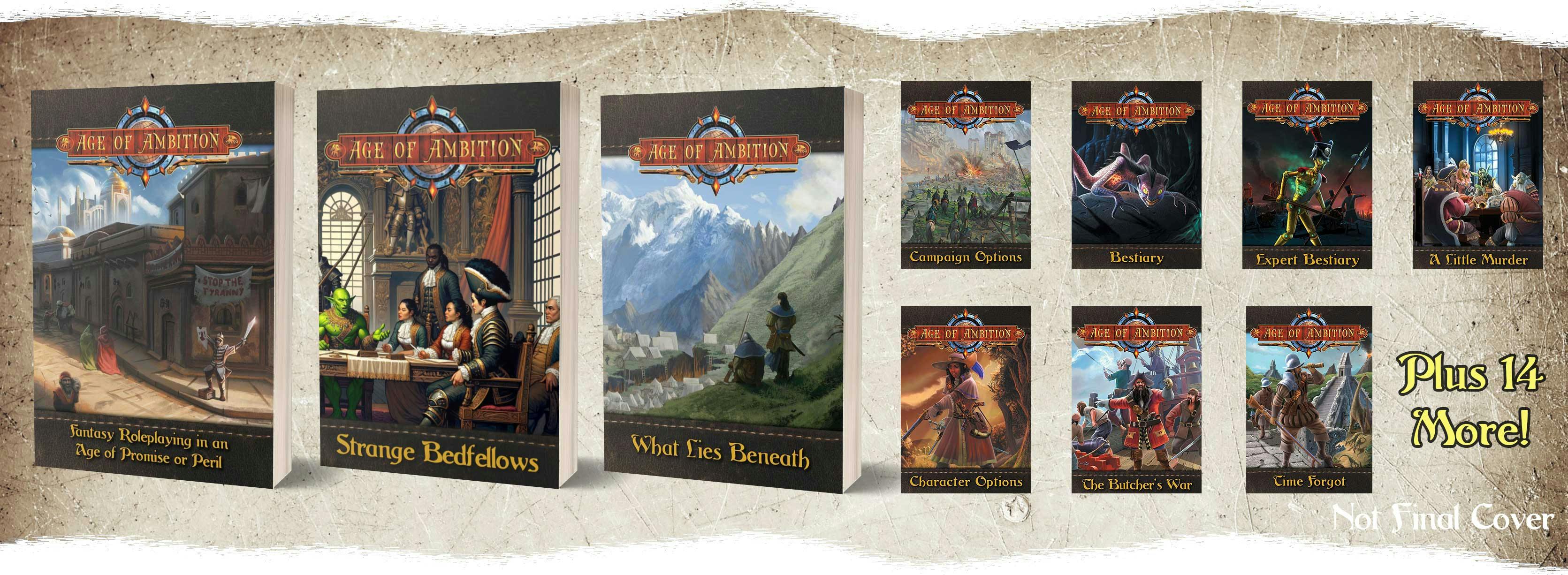 Age of Ambition is a fantasy roleplaying game set in a world rapidly leaving the traditional fantasy milieu behind, where magical and technological advancements are challenging the long-standing social order, and where the heroes help guide the world into a brave new age.