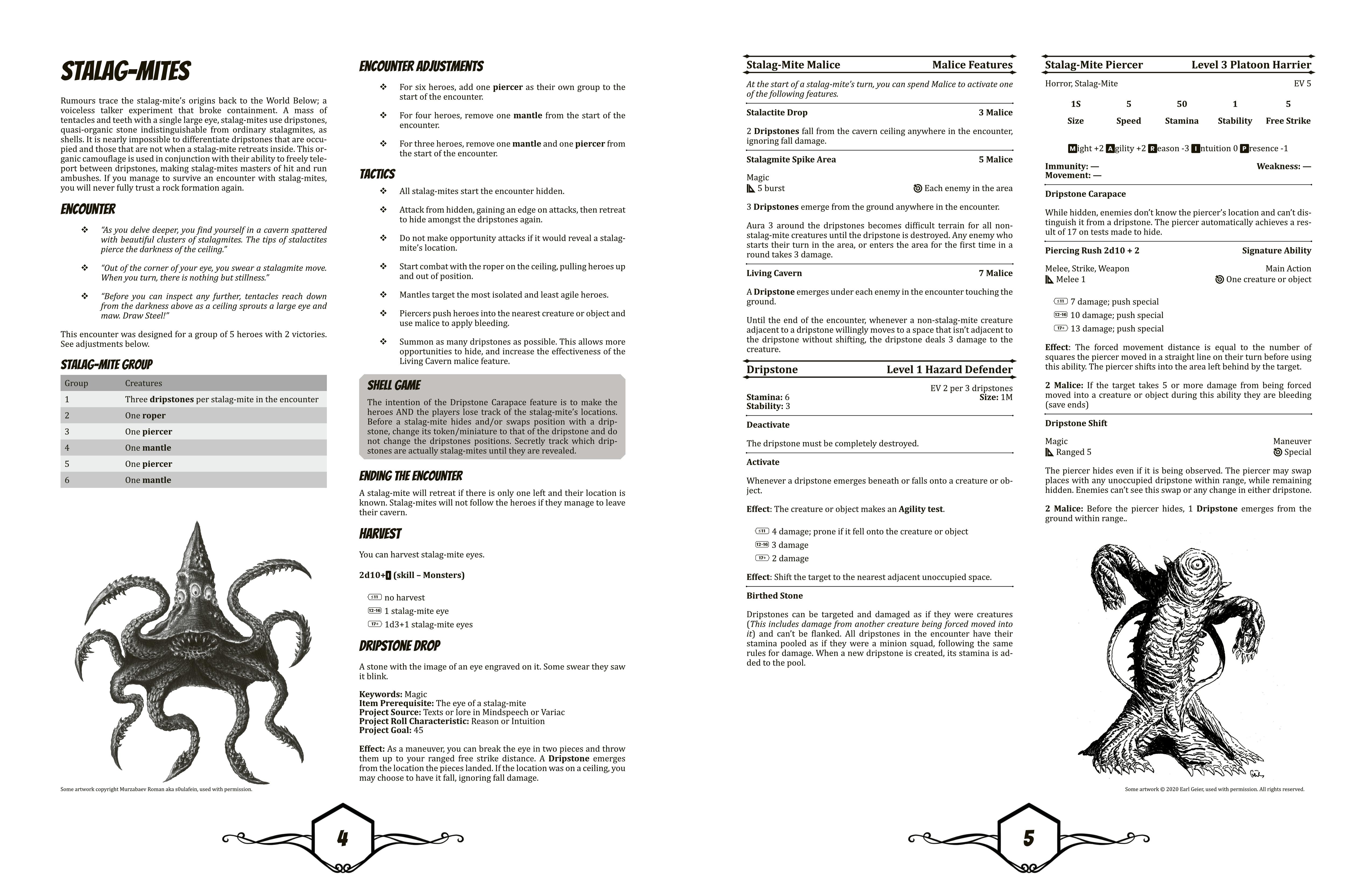This product, and its stat blocks, are about the feeling of being ambushed while adventuring. We view these as standalone, one off encounters, though the director is free to use these as they wish. Monsters are primarily designed as elites or solos. There are a few bands (2-3 stat blocks) and all of them can be used as one encounter without overwhelming the director.