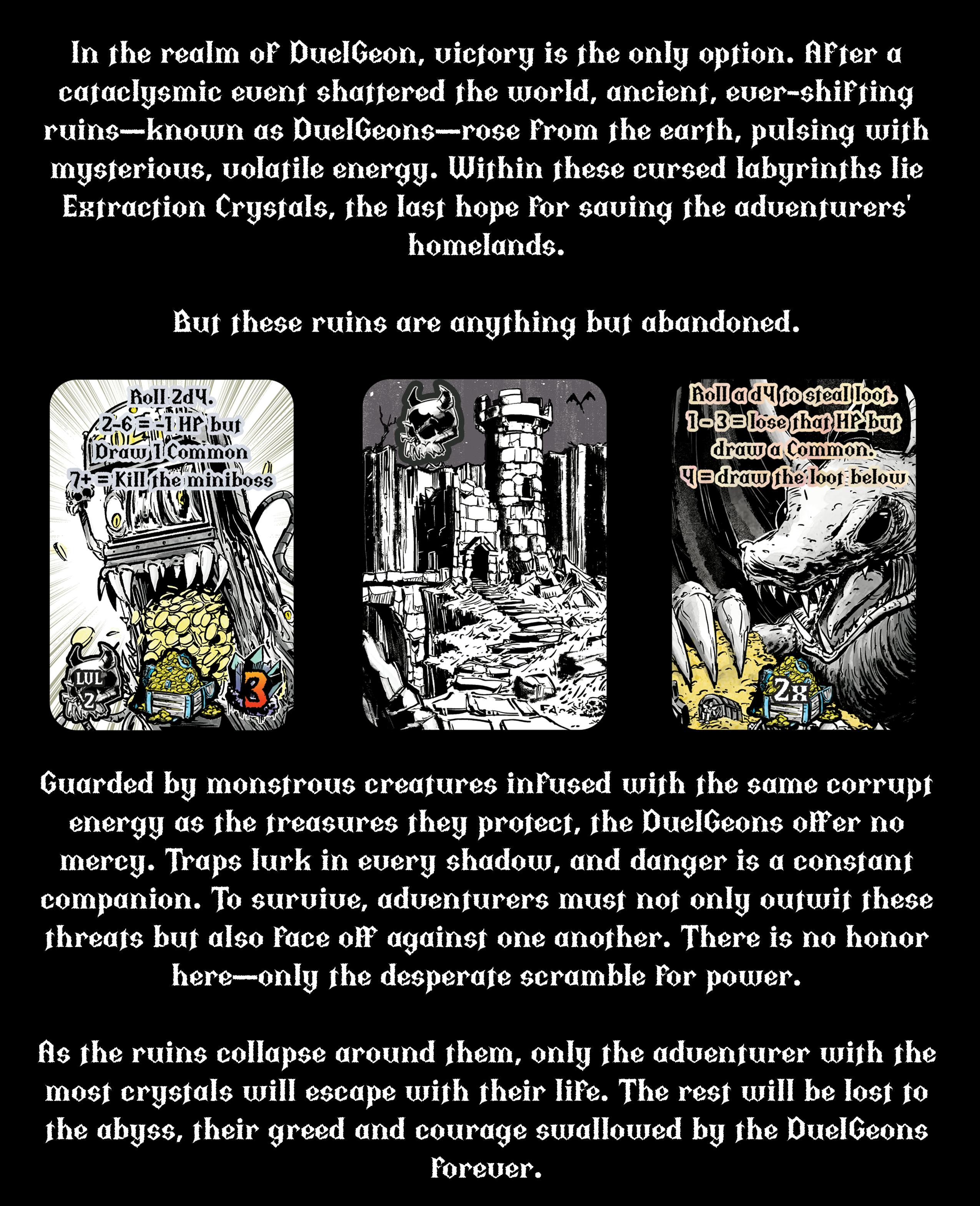 Delve into treacherous ruins in this card-driven dungeon adventure, where deadly traps, fierce monsters, and powerful minibosses await. Will you challenge the Boss and snatch the loot, or roll to battle rival adventurers in a race for glory?