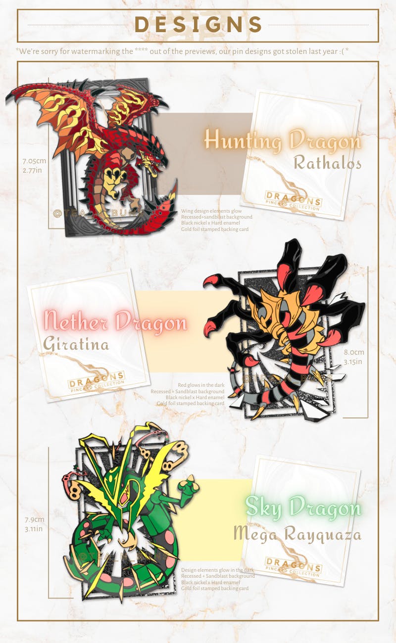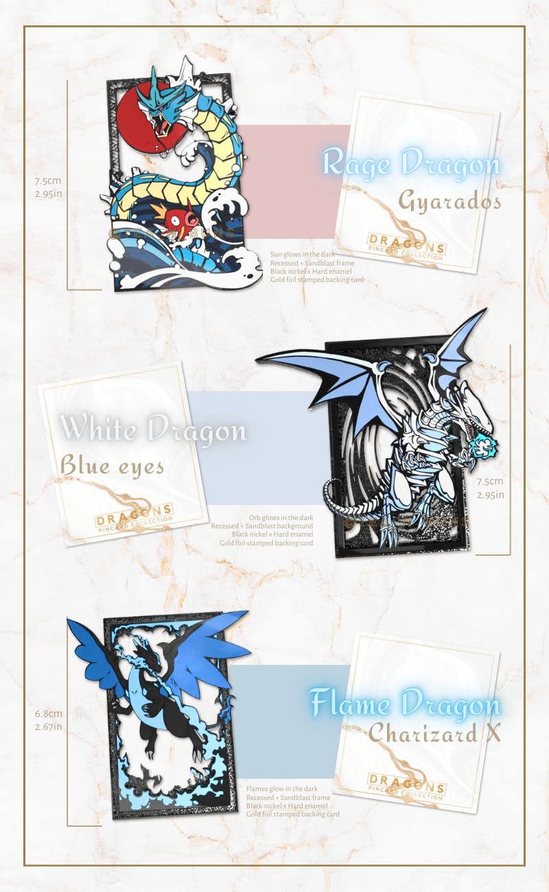 What are Pincards? They are large (2"-3") pins designed in the format of cards (think UR, SSR collectibles) and it is very likely we will regularly make more Pincards inspired by our favorite monsters moving forward!