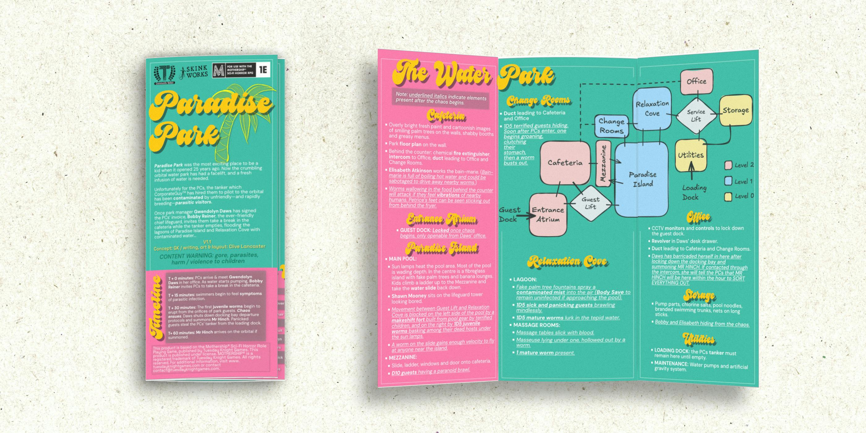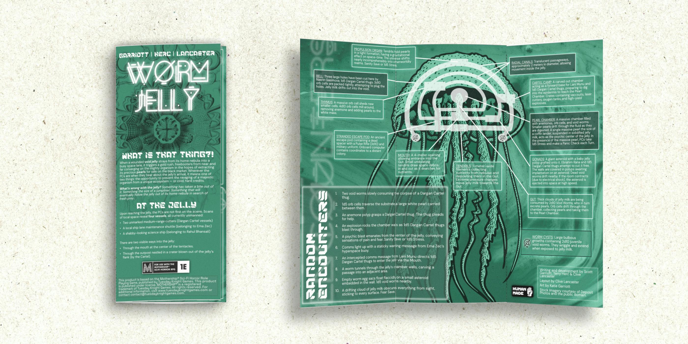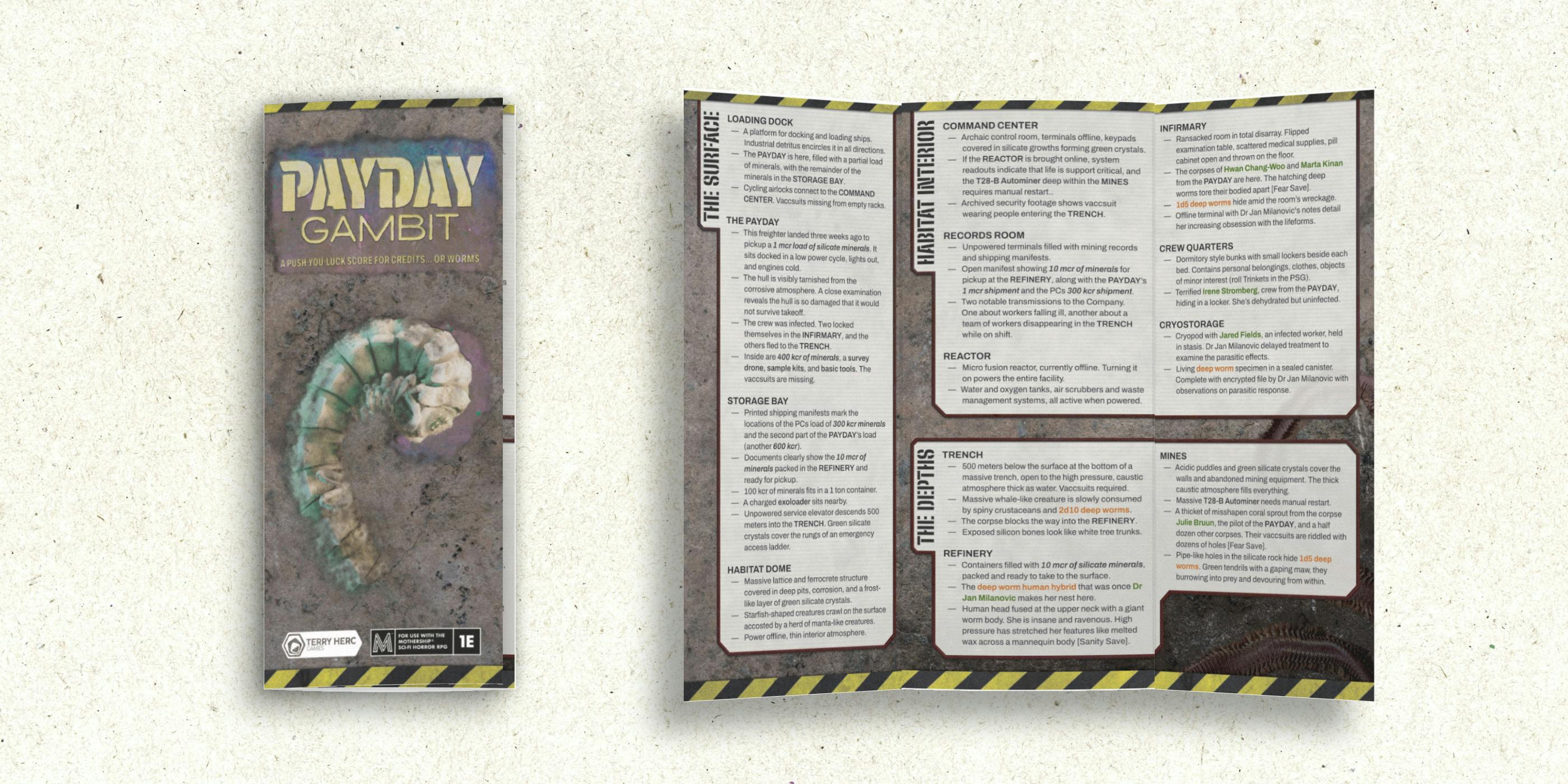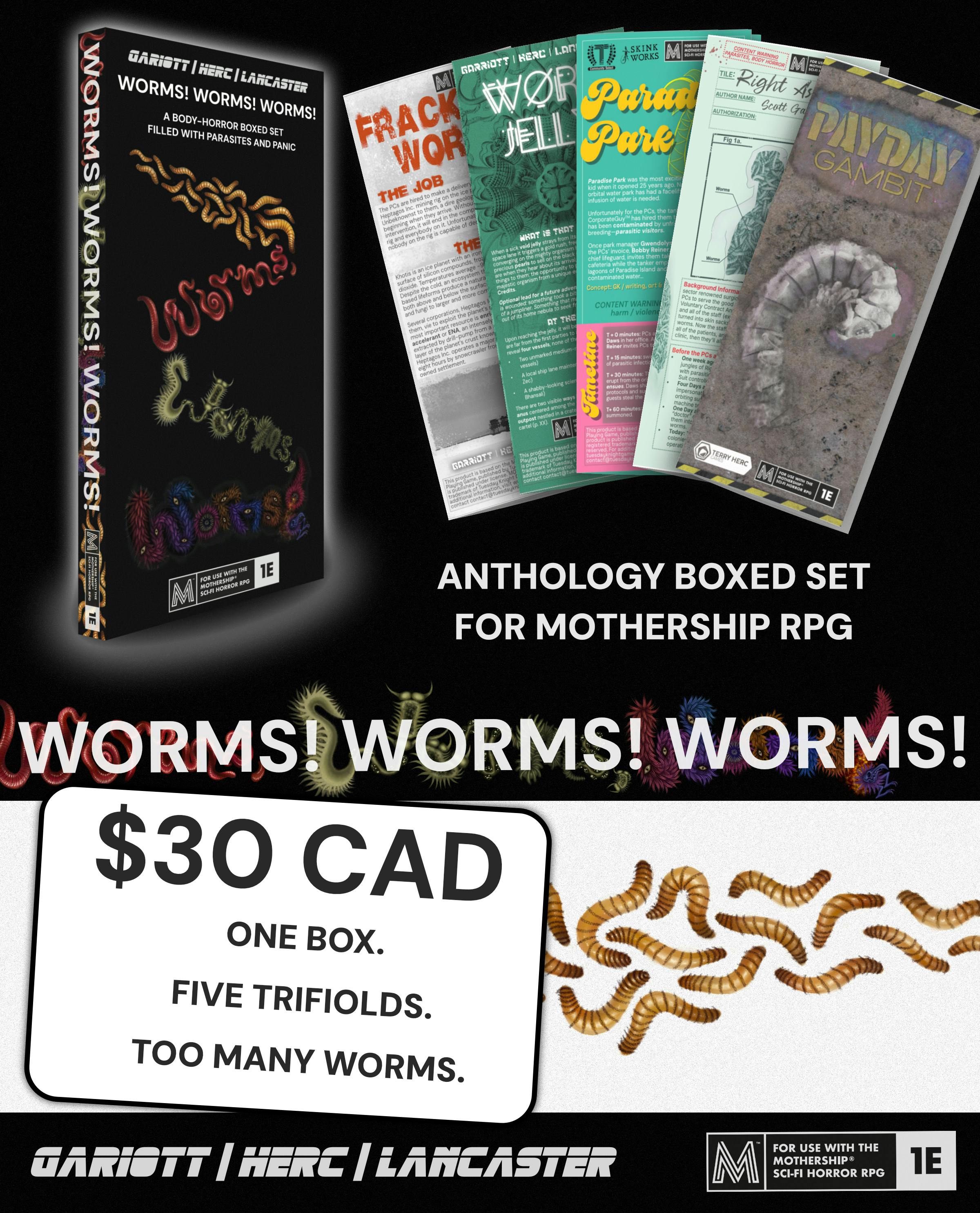 Five wormy trifold one-shots (PDF) for Mothership.