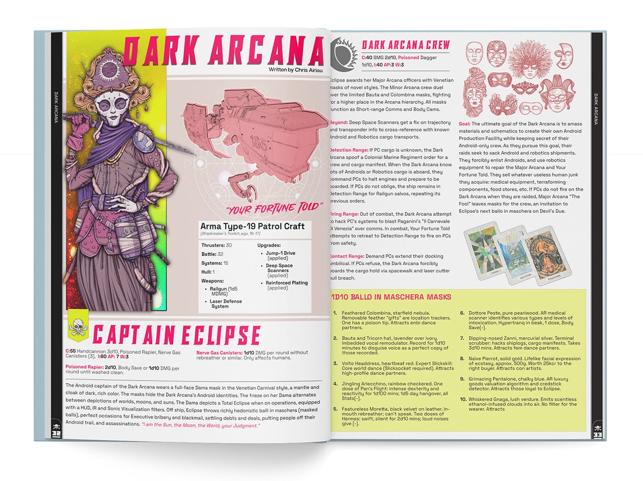 The android crew Dark Arcana, also written by Chris, use masks to conceal their identities and to mark their rank, with the most-coveted Venetian-style masks going to the Major Arcana officers.