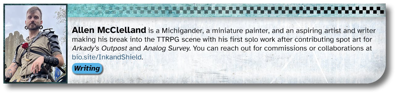 The first space pirate anthology for Mothership, and one of the largest modules published to date, Devil’s Due brings you pirate crews, a pirate planet with the plug-and-play city of Azimuth and surrounding wilderness locales, several new modules, mini-games, random raiding tables of pirates and prey, and loads more from 12 writers and over 20 contributors! This book packs all you need to run space piracy games in Mothership RPG through several campaigns.