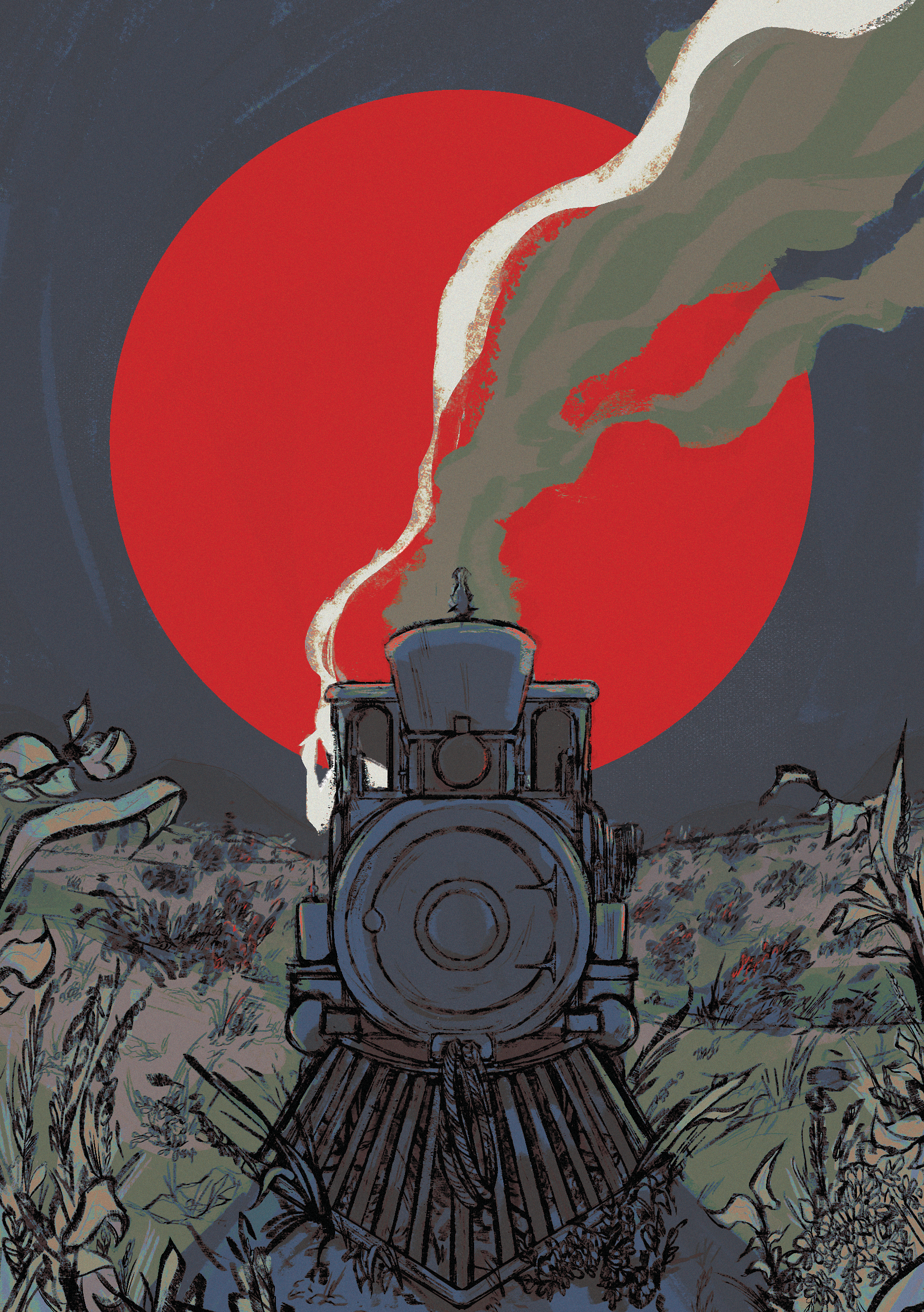 Every six years, a red moon takes over the sky above El Paso. Folks say it's like a "bloody bullet hole in the sky." Its appearance augurs the appearance of ghosts in and around the young township. This year, a train is barreling through on invisible tracks, straight for the Underworld...