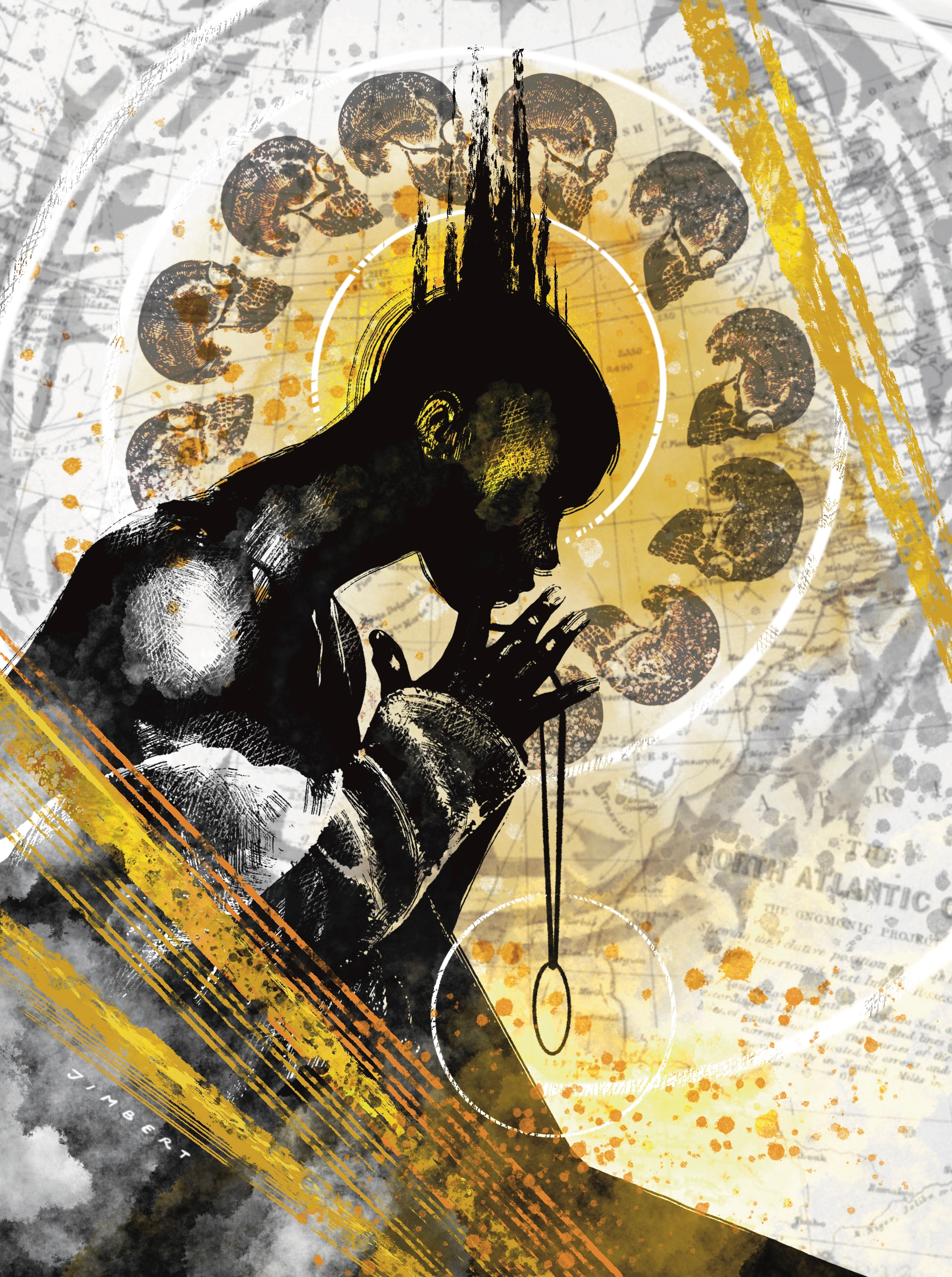 The Kid is a myth in the making. They are also the bratty younger sibling of another hunter. They have been tasked by Providence and the Lady in Gold to kill any rival who calls them out—to offer them Salvation or Damnation—but they also live in the shadow of their older sibling, desperate to break out and make a name for themselves. Play the Kid if you want to explore what it’s like to live in another’s shadow, or if you want to be a shit-talkin’, fast-shootin’, legend-in-waiting.