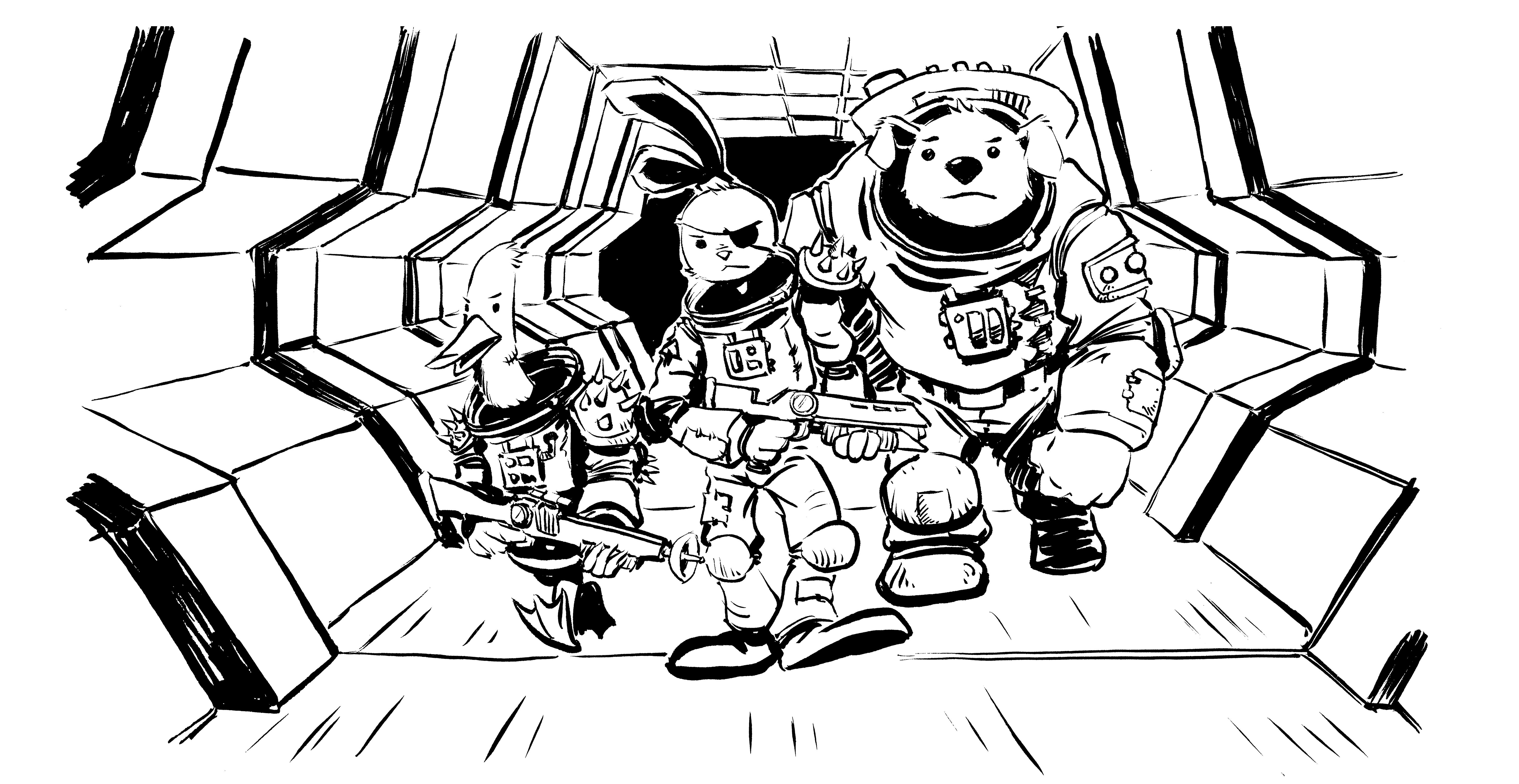 A scifi adventure game inspired by Cairn, Into the Odd, and Mausritter. Discover bizarre worlds, fantastical alien creatures, ancient spacecraft, space pirates, and the depths of the unknown.