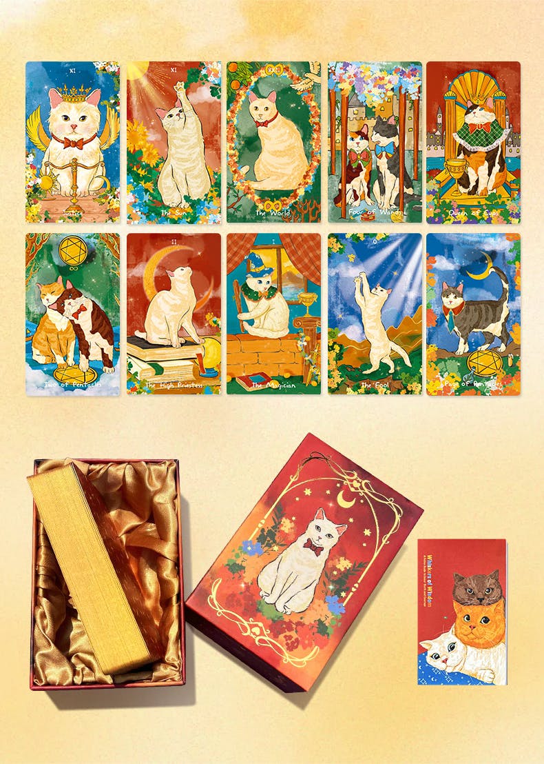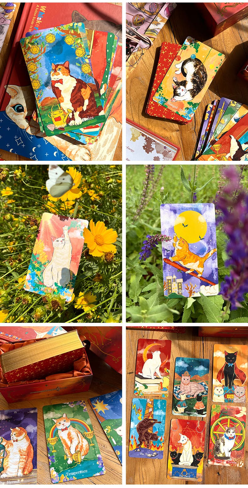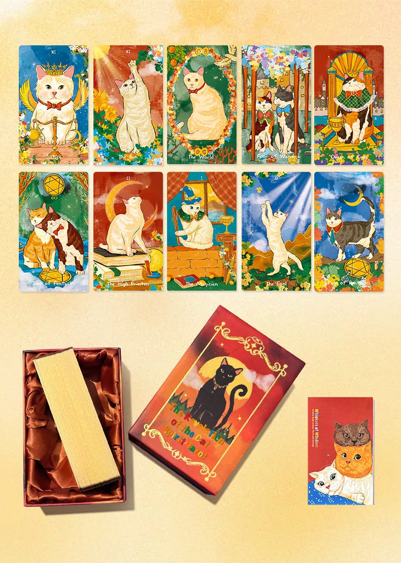 🐱 Perhaps what we need most is not to foresee where the cat treats are, but to have eyes as clear and pure as those of a cat — eyes that can see through the truth and are also brave enough to pat the unknown with their paw pads. This set of tarot cards blessed by the cat master is like a little kitten sneaking into your arms with its tail tip. When the cards are flipped, you can hear the mysterious purring guidance: it might be the inspiration from a butterfly landing on the tip of your nose, or a sudden epiphany after knocking over a mug.