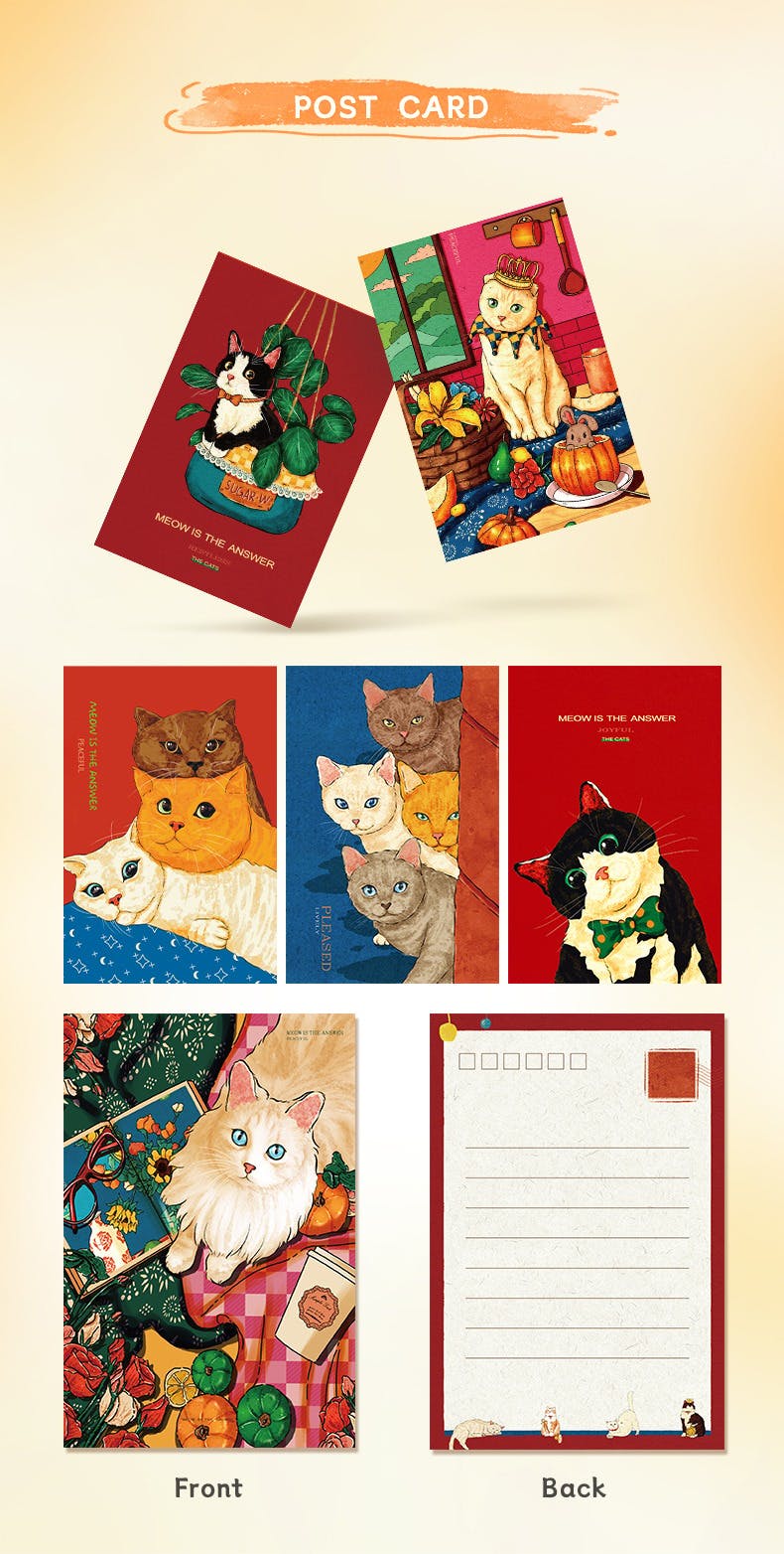 If we hit $10000, every backer will receive a set of 6 adorable cat-themed postcards!