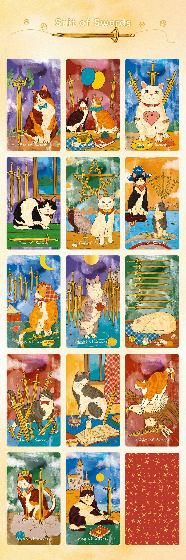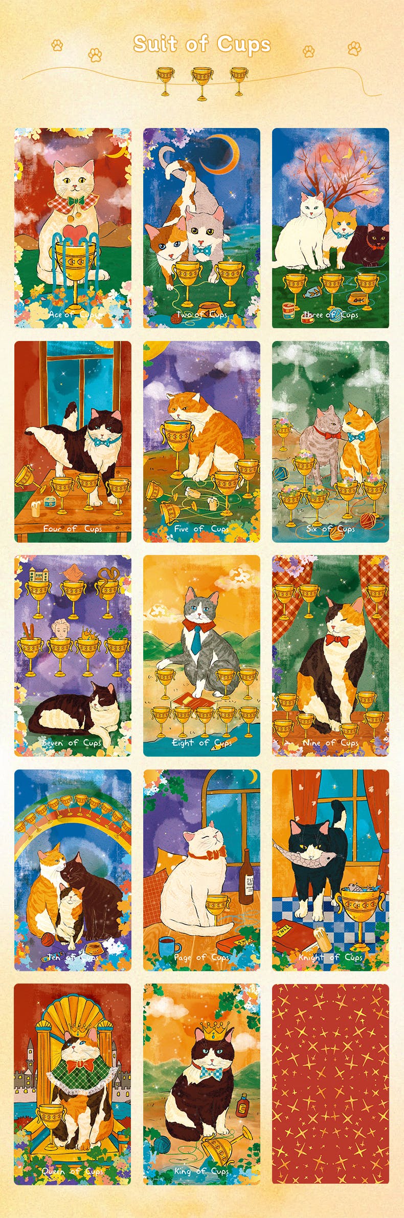 This deck’s art style embodies sunlight, positivity, warmth, and joy, radiating the energy of being loved and loving. Through observing cats and interpreting tarot, we’ve woven their daily quirks into the fabric of divination’s mysteries.