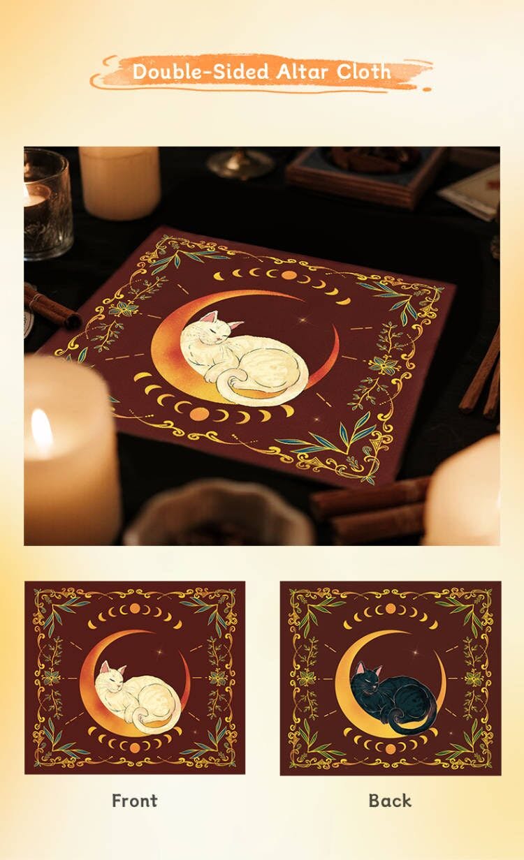Altar Cloth (690x690mm Mega Grid)🌙 Black cat side absorbs stagnant energies during readings White cat side amplifies intuition when charging tools Together they create a vortex for 360° energy flow