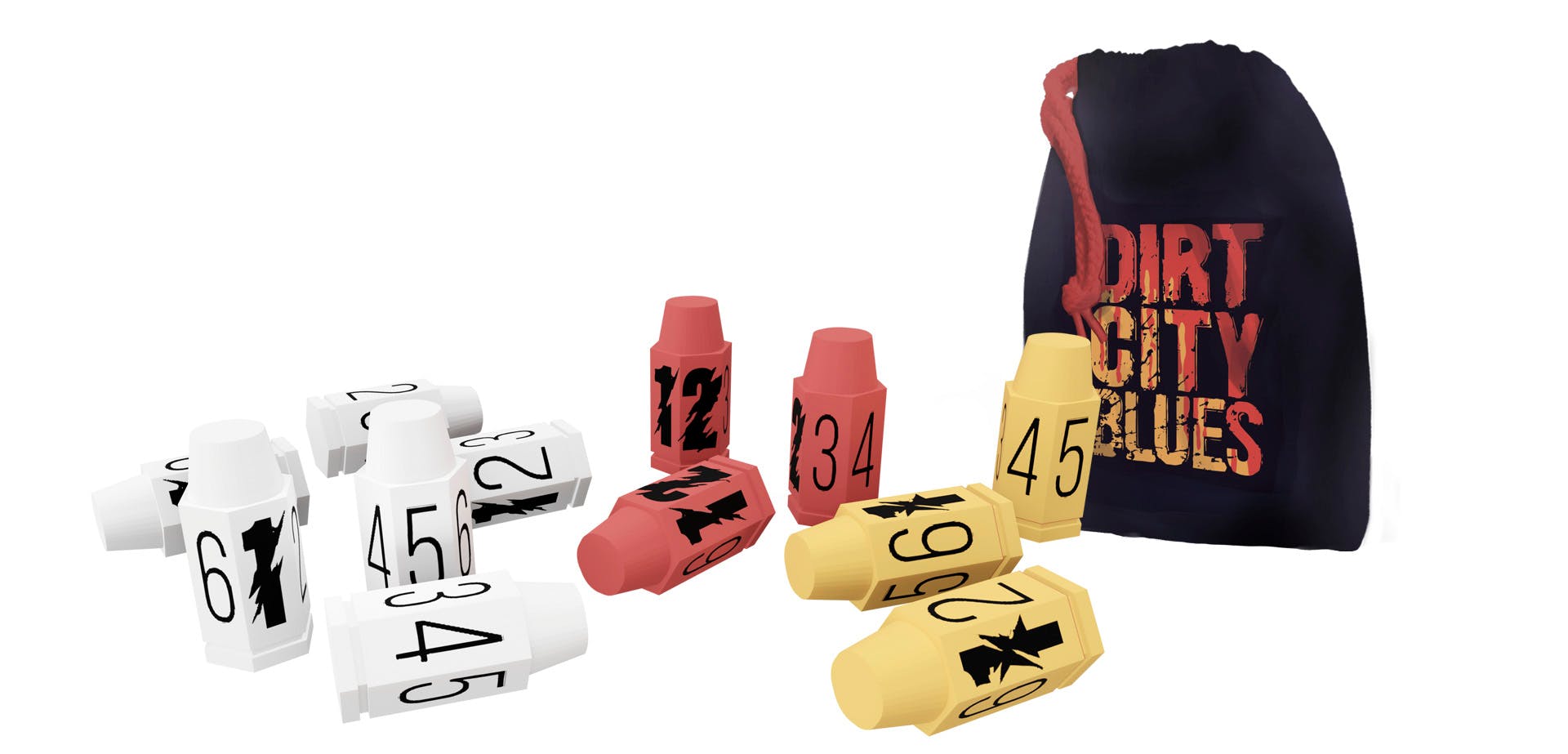 One of the rewards you’ll find in the Dirt City Blues campaign is the custom Bullet Dice Set: a full set of stylish d6s shaped like, well… bullets.