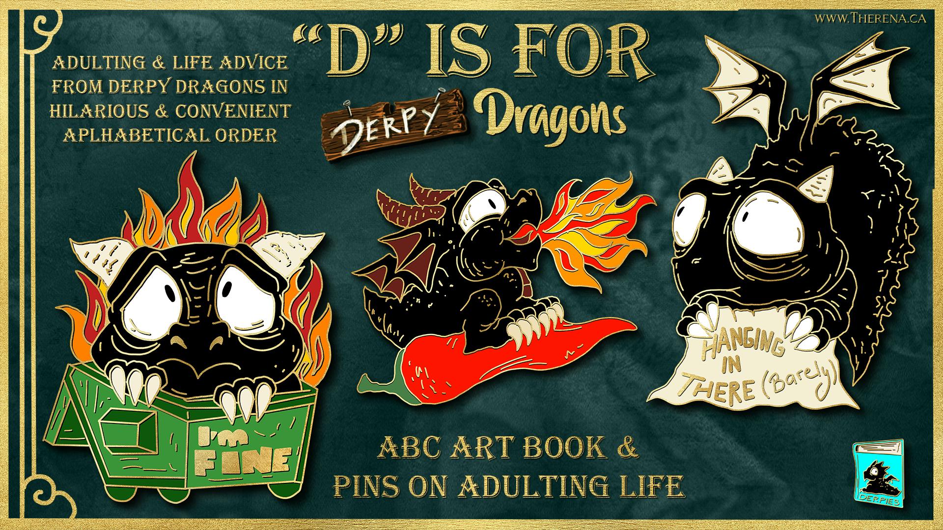 However, my biggest campaign of the year is coming in September as a part of Printopia. I've had many backers request a Derpy Dragon Art book, and this September that wish will become a reality. The Derpy Dragons are coming back this autumn for more shenanigans! It's in my first Derpy Dragon art book, which just happens to be organized alphabetically. It's the ABC's of Derpies with adulting and life advice from your favourite dragons! And while it is an art book campaign, it is also a pin campaign! All stretch goals will be new pin designs like the "Dumpster Fire" Derpy & more! You can follow "D is for Derpies" here.