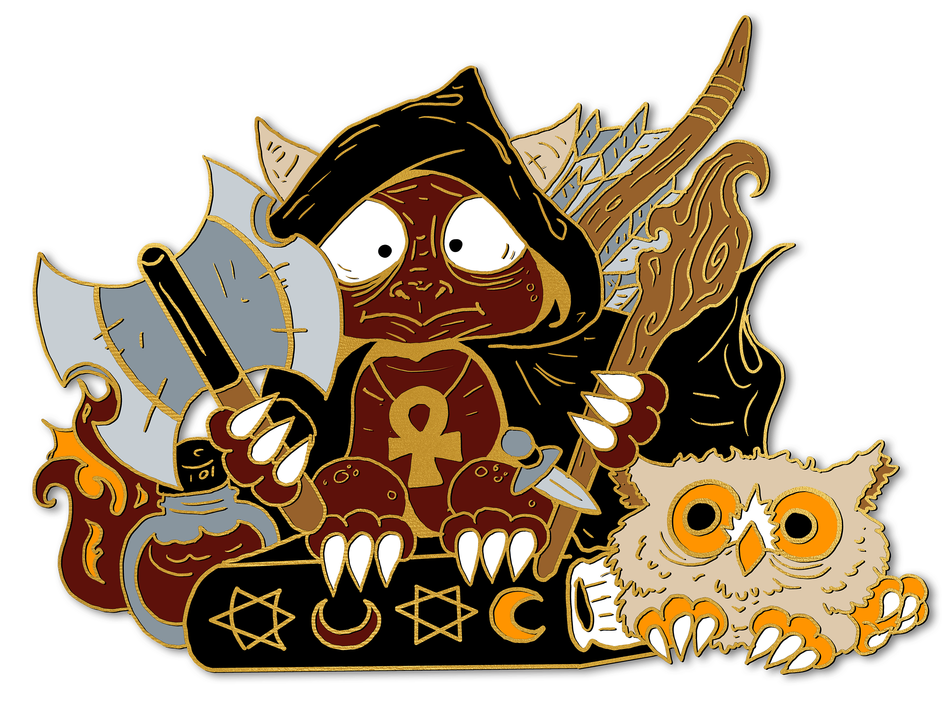 We had another custom pin commission for this campaign by the lovely mind of Cassirole. For this design, she requested a multi-classing derpy. So, I present to you "Jack of all Classes". He will be available as an add-on, and at a discounted rate during the survey if you want to add him to your hoard!