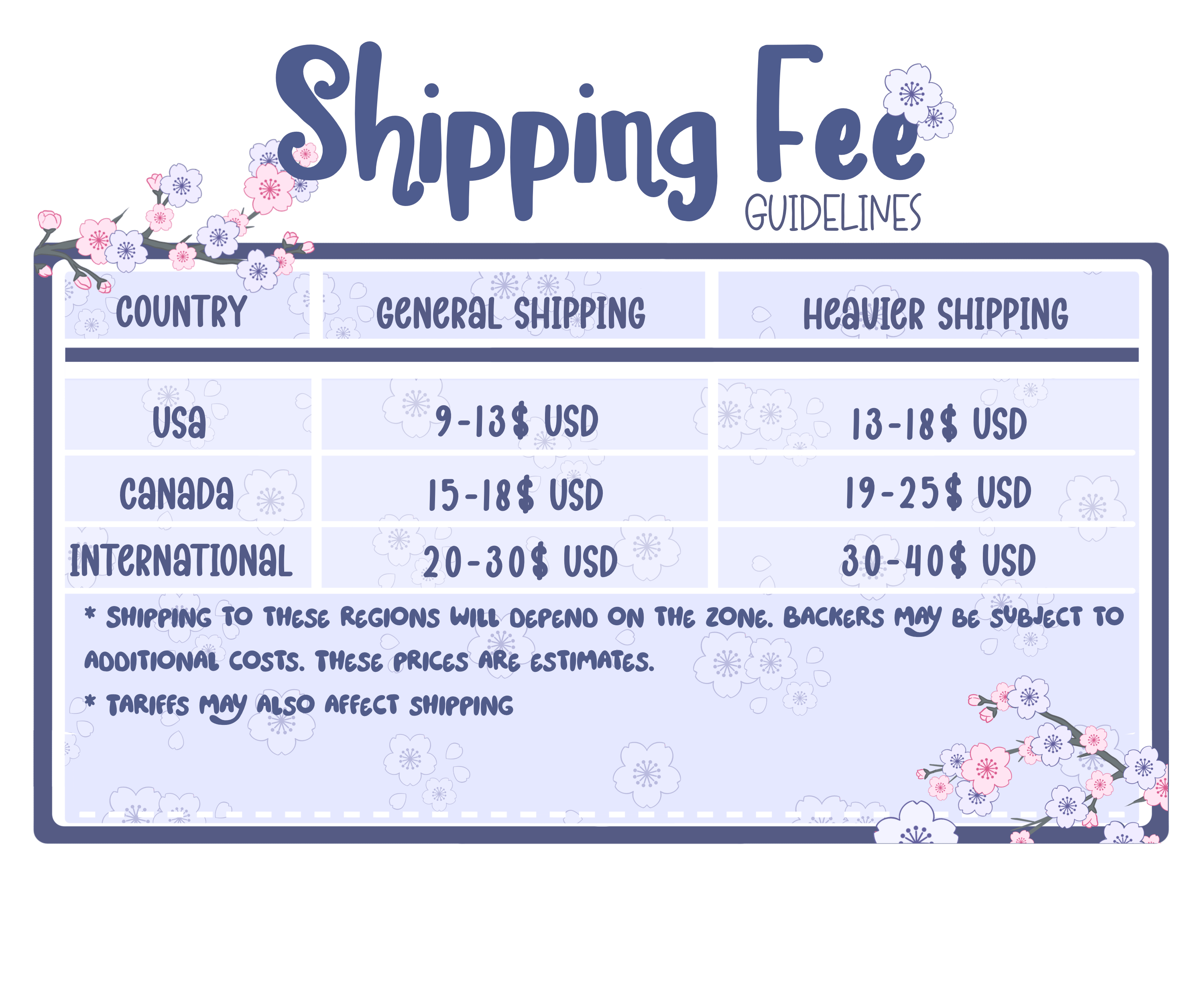 Tariffs: Due to the uncertainty of the tariffs looming over small businesses like ours, we have modified our prices to combat the potential problems that may occur as our main manufacturers are located in China.