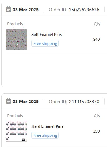 Invoices were paid 3.3.25, and pins are in production. We should see some photos from the factory very soon and will have them in-hand next month :D