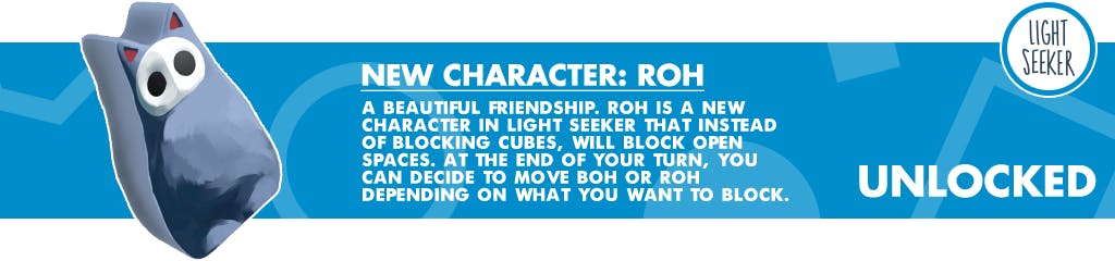 A curse has cast a shadow over the valley, causing the inhabitants to run from the villages and the animals to flee their nests. A mysterious creature named Buh will use its magic to seek out and restore the light. You must slide or tilt cubes to increase the light in the valley as you try to accumulate 7 or more connected points of light.