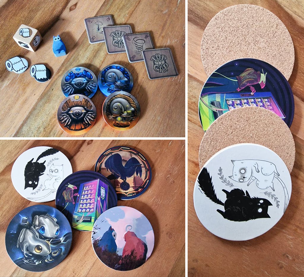 We also have the final look of our stretch goals unlocked. The coasters are just perfect!