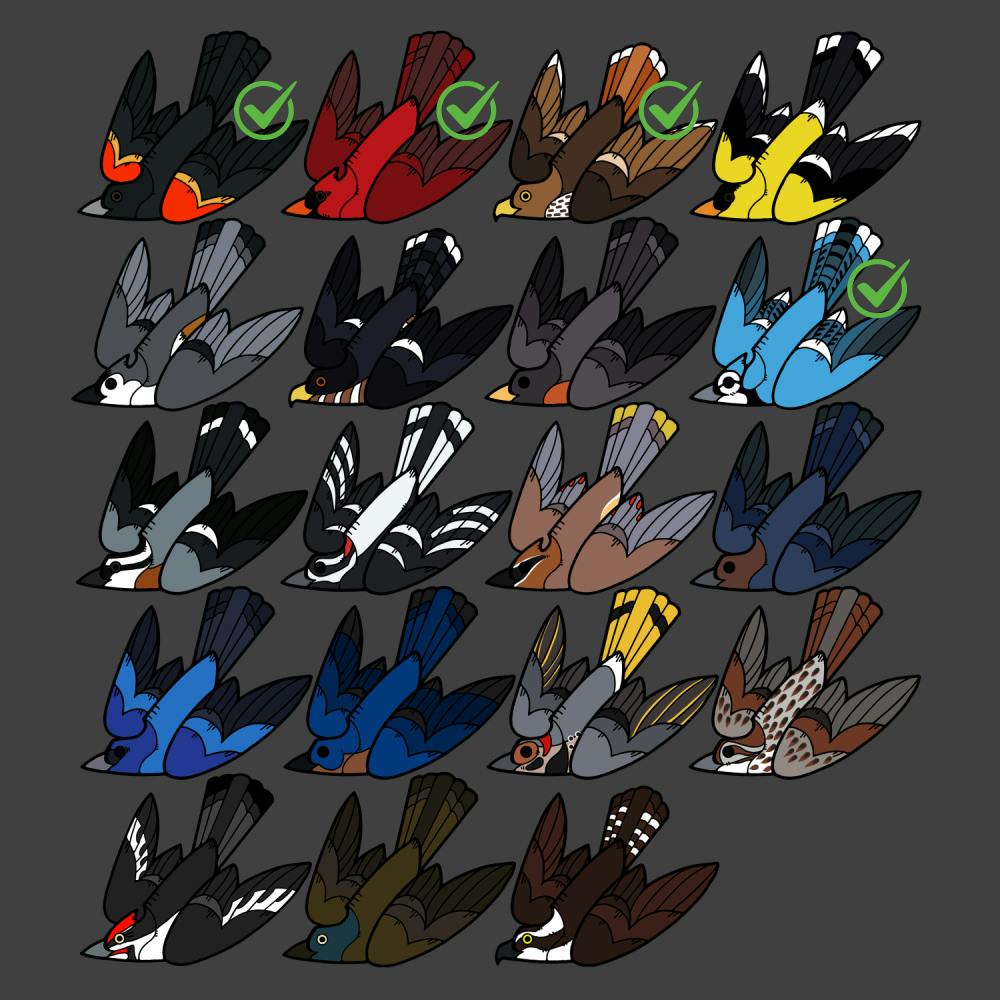 We raised $1353 out of our initial $900 goal, which means the Northern Cardinal, Red-Winged Blackbird, Red-Tailed Hawk, and stretch goal Bluejay are all unlocked!