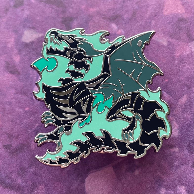 Tiamat was scaled up - now measuring a grand 3" tall! An upscale was proposed when she was unlocked as an option, and we're glad we went for it, she is MIGHTY! Rest assured, her price for backers and preorders will not change: for the duration of the campaign, she will remain available as $9 like the rest of the pins, and after the campaign concludes her sale price will raise to match her larger scale.
