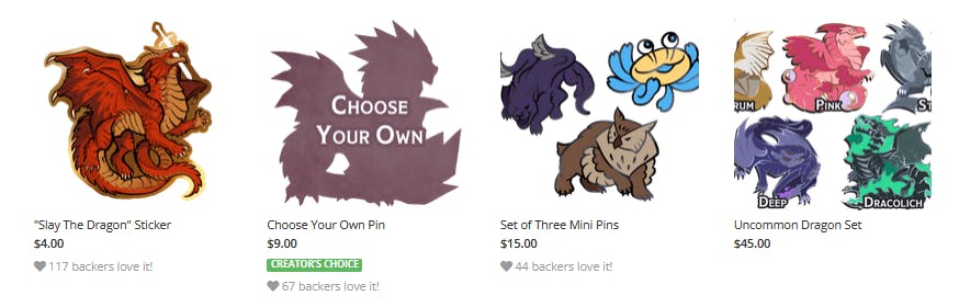 *Please note, you can't choose the mini-pins for your "Choose your own pin" option, so be sure to select the minis as their own individual item when pledging.