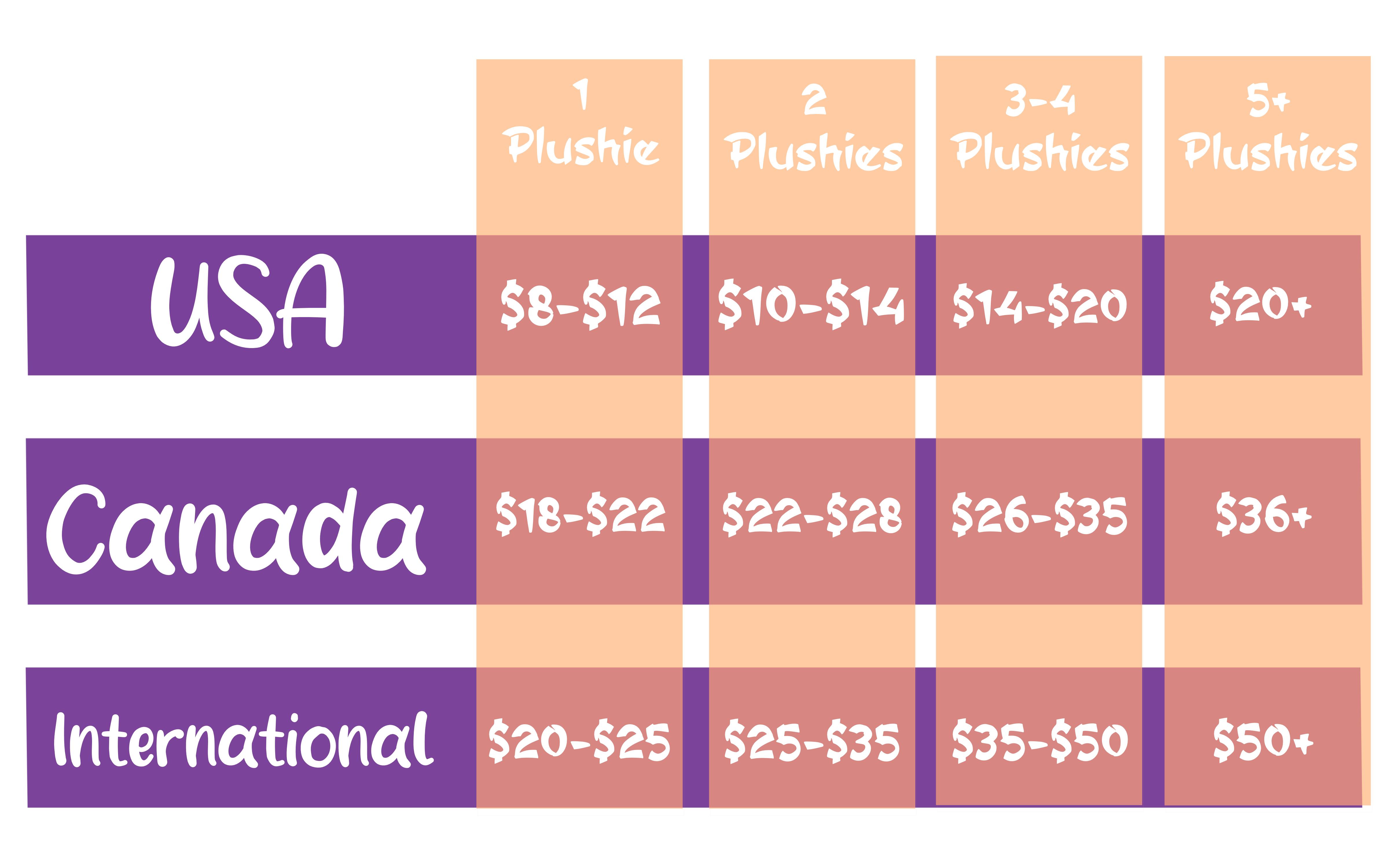 The plushies will be shipped in large poly mailers to reduce cost of shipping.