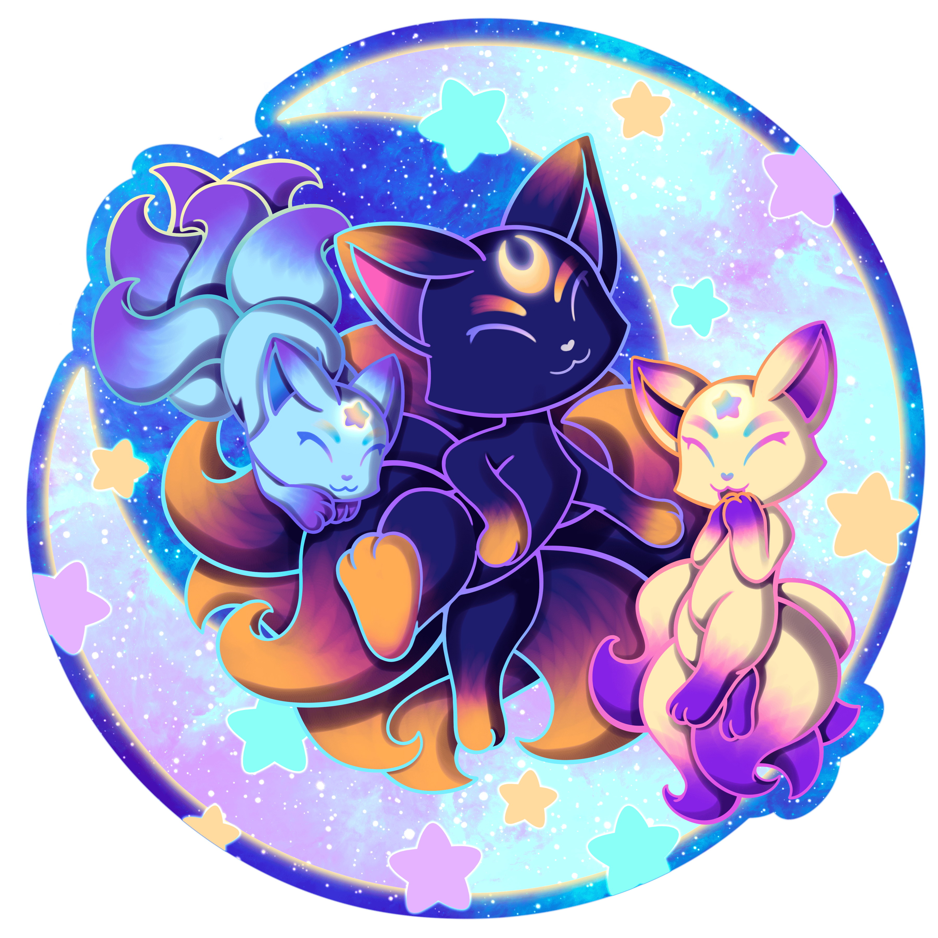 Cosmic Kitsune Family Acrylic Charm and Lanyard