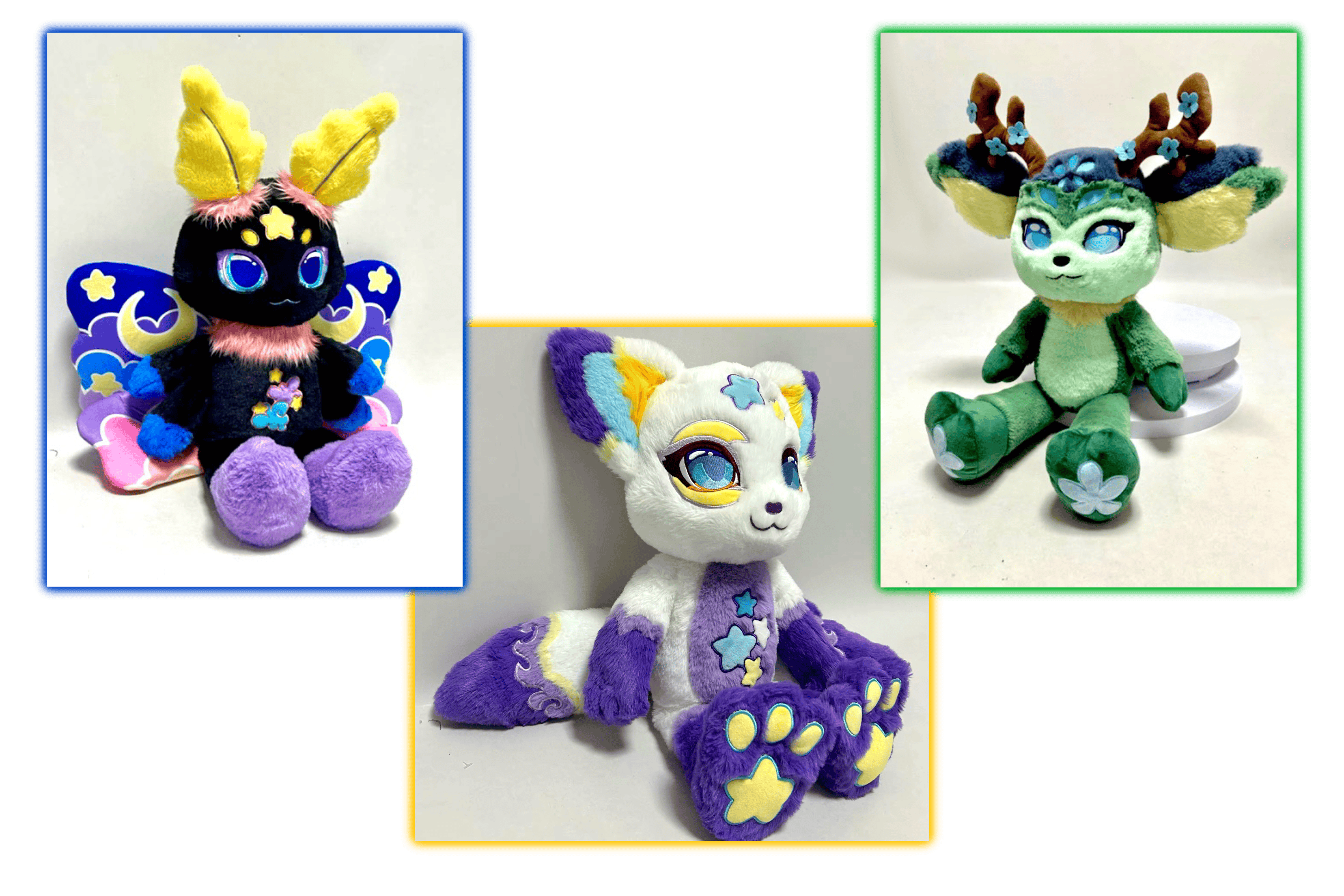Our first campaign we ran a couple of months ago introduced this plushie collection with Eden the Spring Red Panda, Theo the Summer Bear, Maple the Autumn Fox, and Yuki the Winter Tiger. And not just that, we were able to fund stretch goals as well! The Seasonal Dreamers were the main goal, and we unlocked all of the stretch goals which made up the Magical Dreamers: Artemis the Cosmic Kitsune, Aspen the Enchanted Deer, and Nox the Midnight Moth.