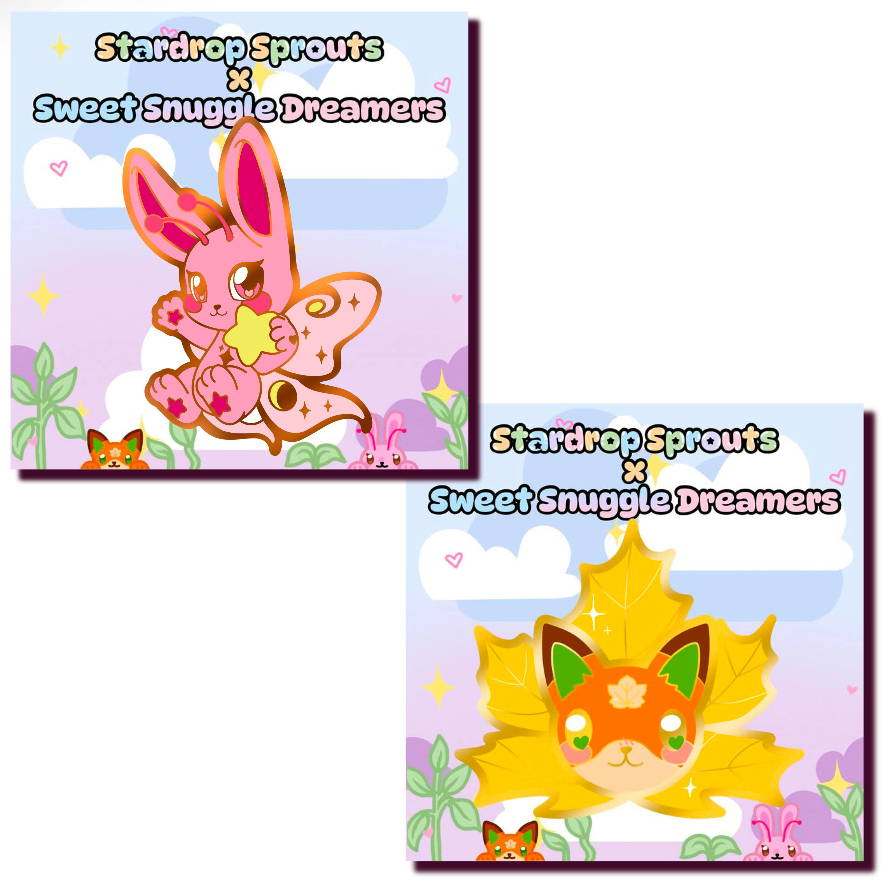 I'm super excited to announce I've partnered up with mychaoticcreations & inked.bunnyx in a cross collaboration! When you back both Sweet Snuggle Dreamers and Stardrop Sprouts, you will receive 2 exclusive enamel pins, one from each creator!