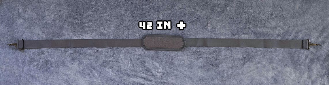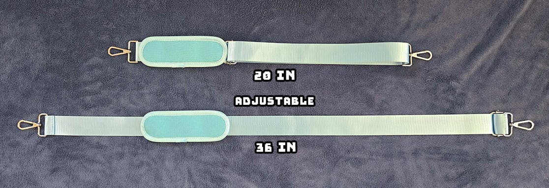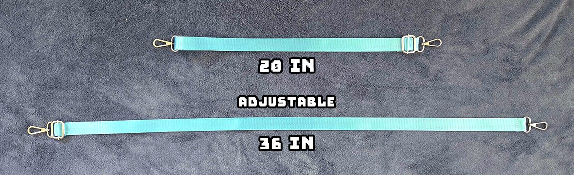 Each strap is adjustable between 20 and 36 inches. Straps can be linked together for longer hang over-the-shoulder wear.