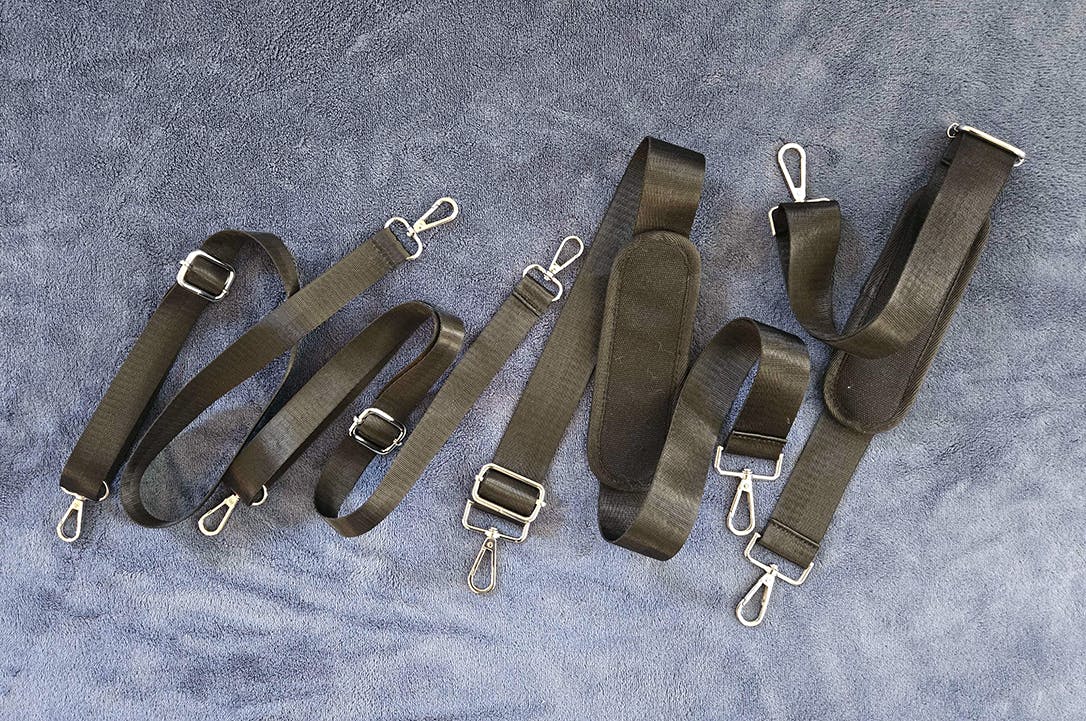 black straps that come with the dark-mode colorway of the bag