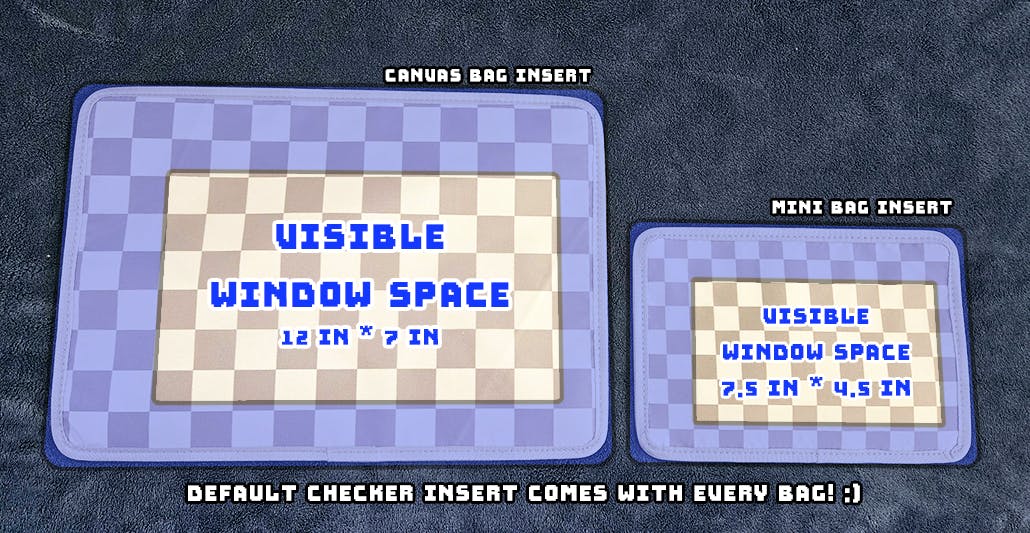 Every bag comes with a default 'transparent' checkered insert but other plain color inserts will be available to select after the campaign is finished!