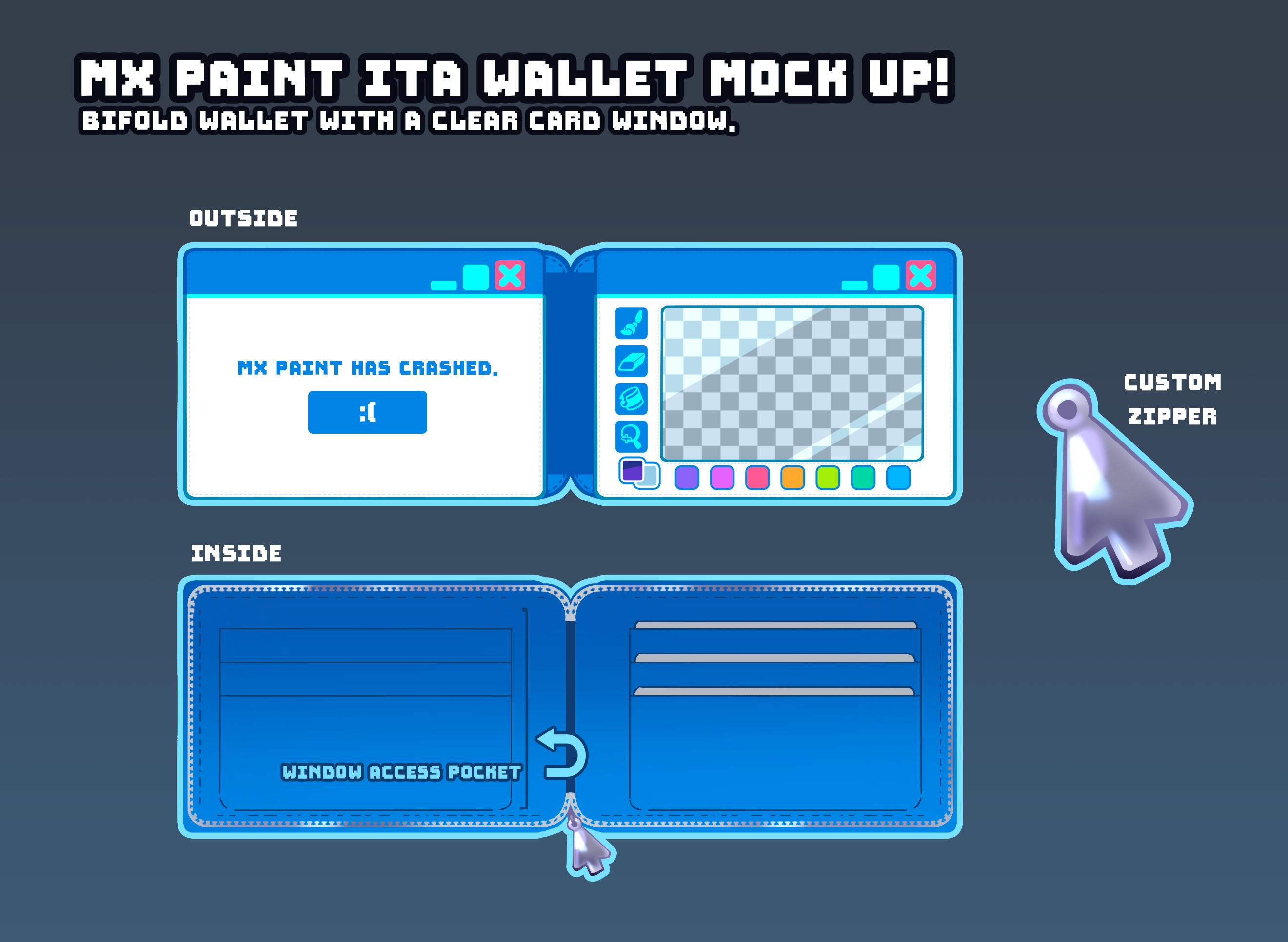 MX Paint Ita Wallet - $30 Bifold zipper wallet with a small clear window for displaying flat artwork. Will be available in all unlocked colorways.