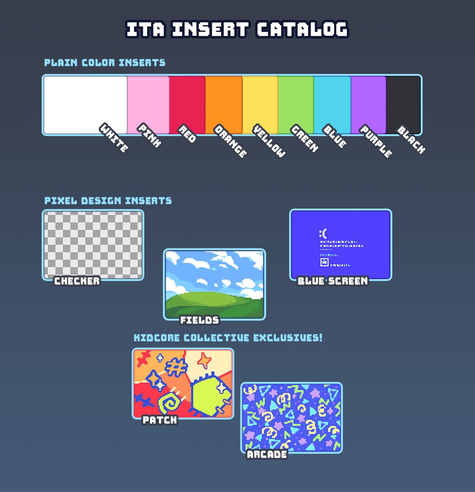 Preview of the insert designs set as rewards for backing both MX Paint and a collaborating Kidcore Collective project!
