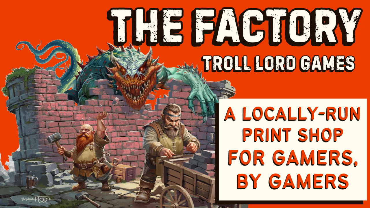 Troll Lord Games has always been a community-forward company; we could never have accomplished all we've done over the past 25 years without your support, input, and shared enthusiasm for the hobby that unites us all. We want your names immortalized in the building that will help propel the TTRPG business forward for the next 25 years and beyond! The Factory gives a home to TLG, to other publishers who want the security of manufacturing here in the United States.