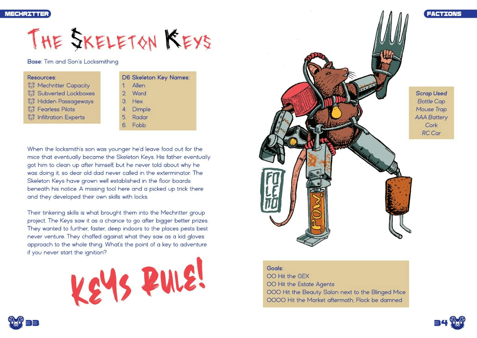 The Skeleton Keyes and the Junk Foodies may not like each other, but they both have big struggles to face. A new regime in the MacDougals has disrupted the Junk Foodies’ regimes. Meanwhile, the Skeleton Keys' daredevil antics drove a wedge between them and the other mech capable gangs. They’ve been safe in the walls of Tim & Son’s for generations but now they want more, they want the whole street.