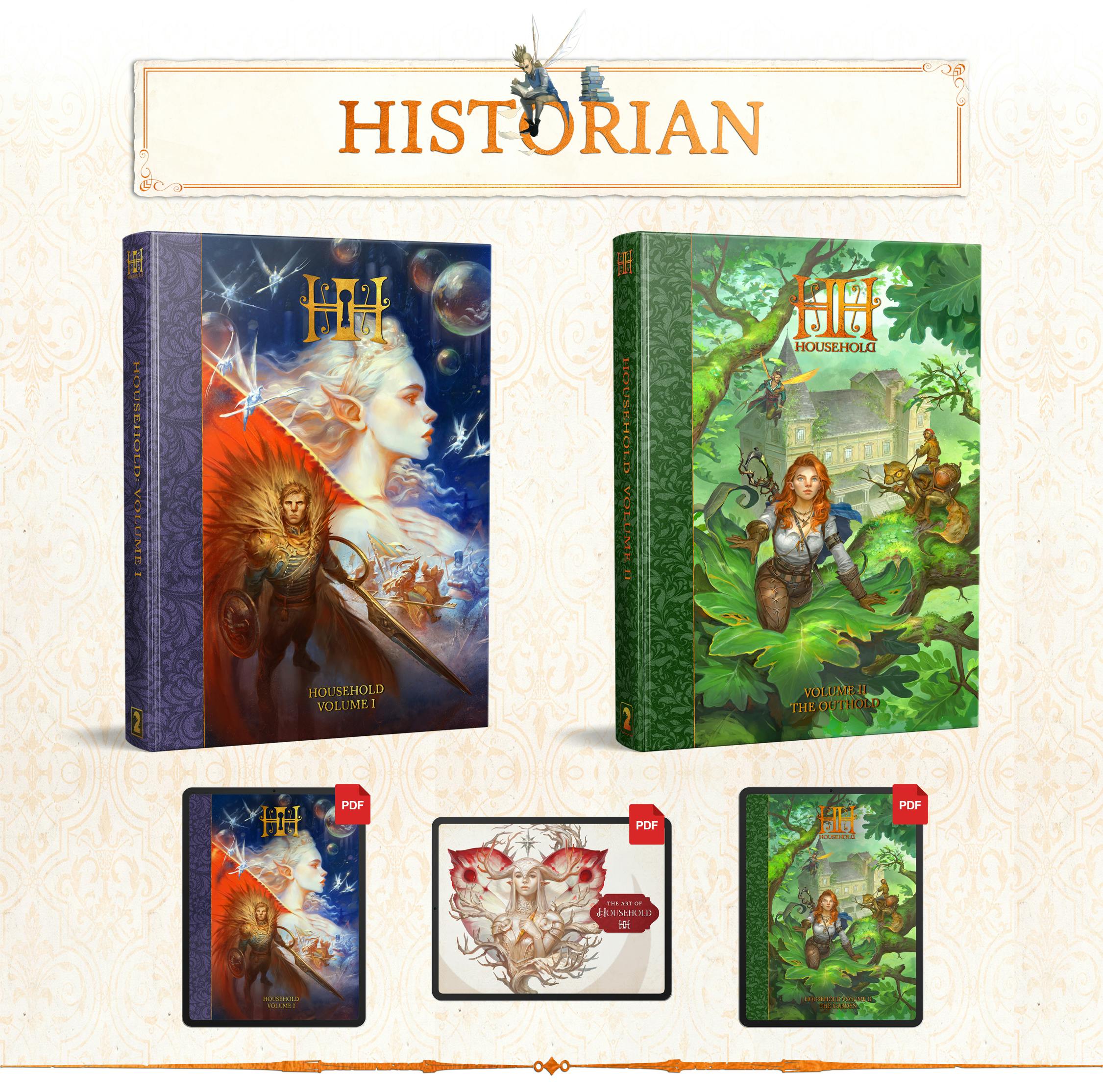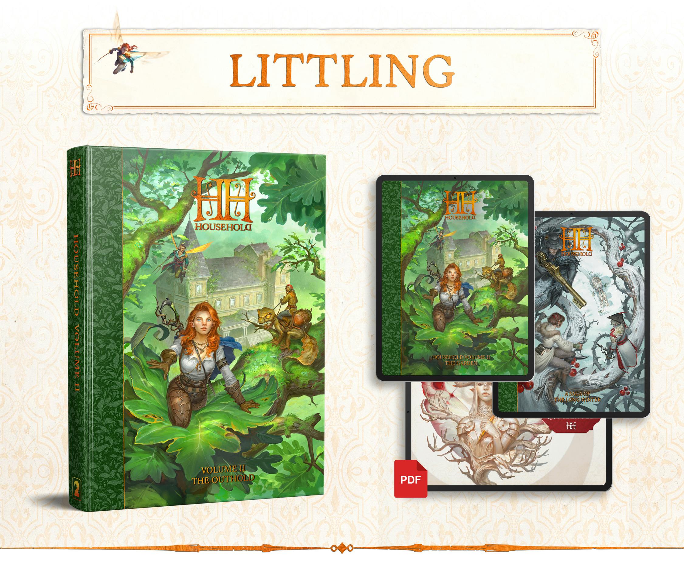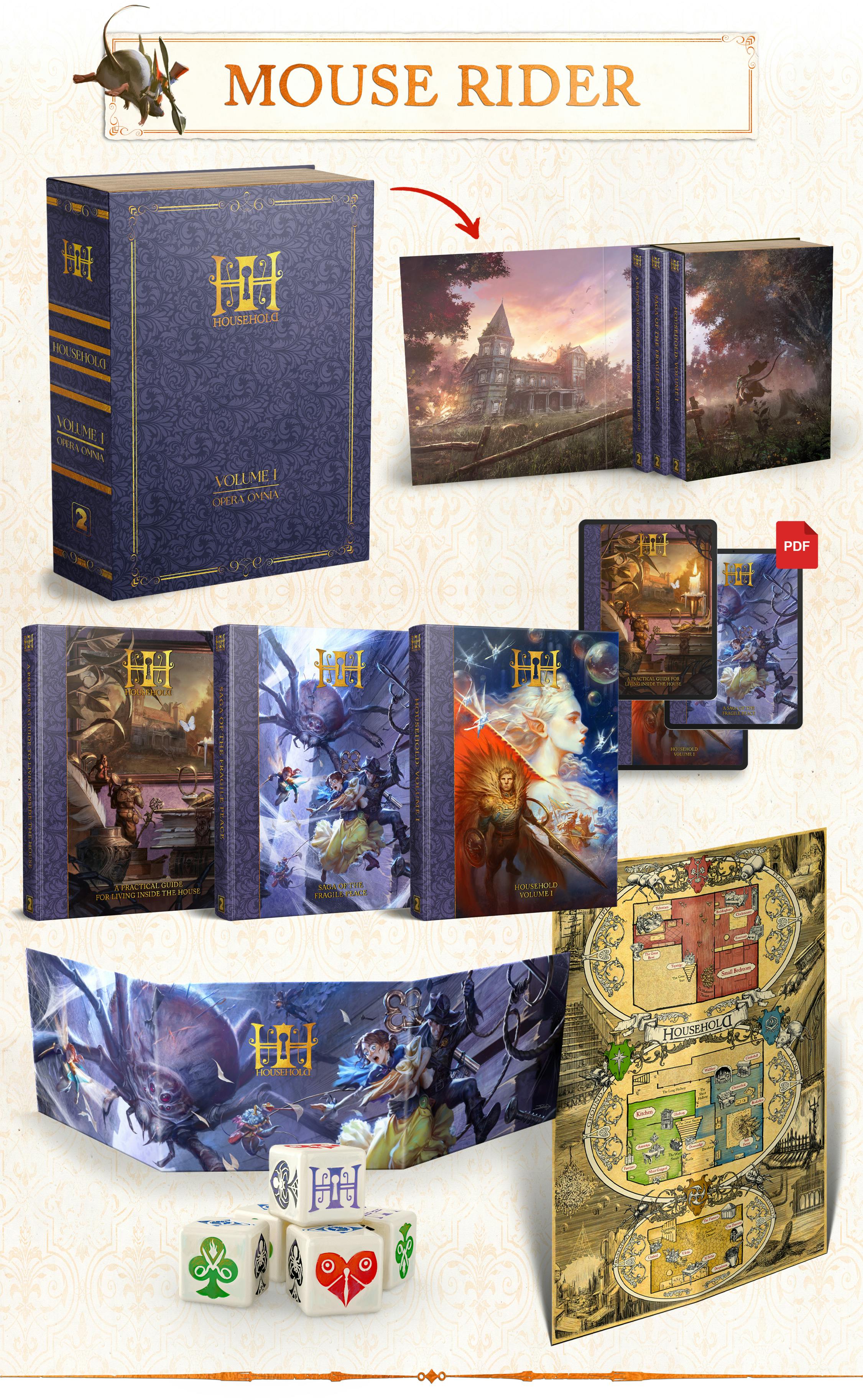 Household is an ENNIE Award Nominated (Product of the Year, Best Production Value) RPG about Littlings, little folks living grand-tiny adventures in a big abandoned House. Set in a regency-like era, 100 years after the disappearance of the Master, Adventures in the Household features an immersive lore that takes players into a unique setting.