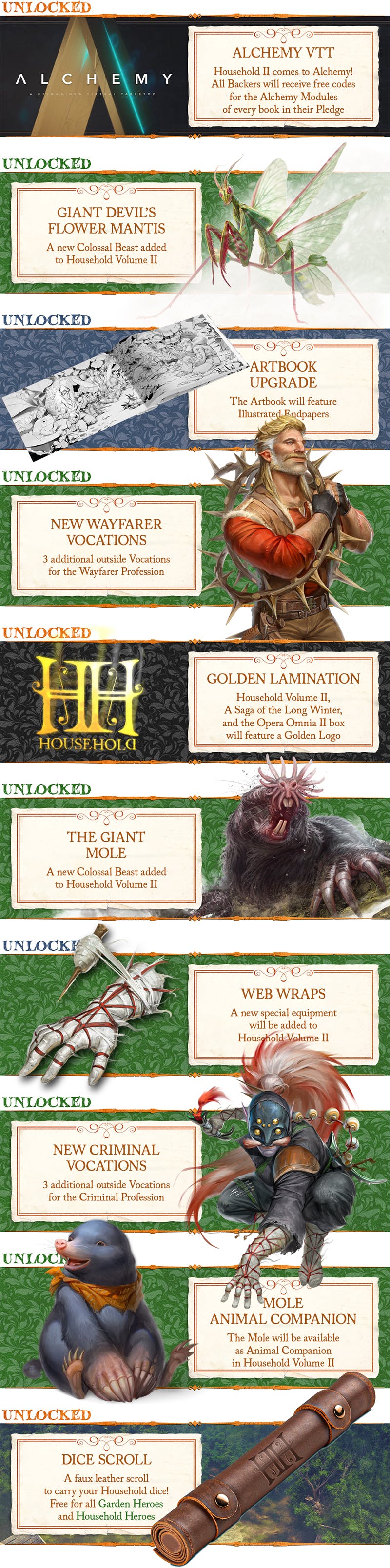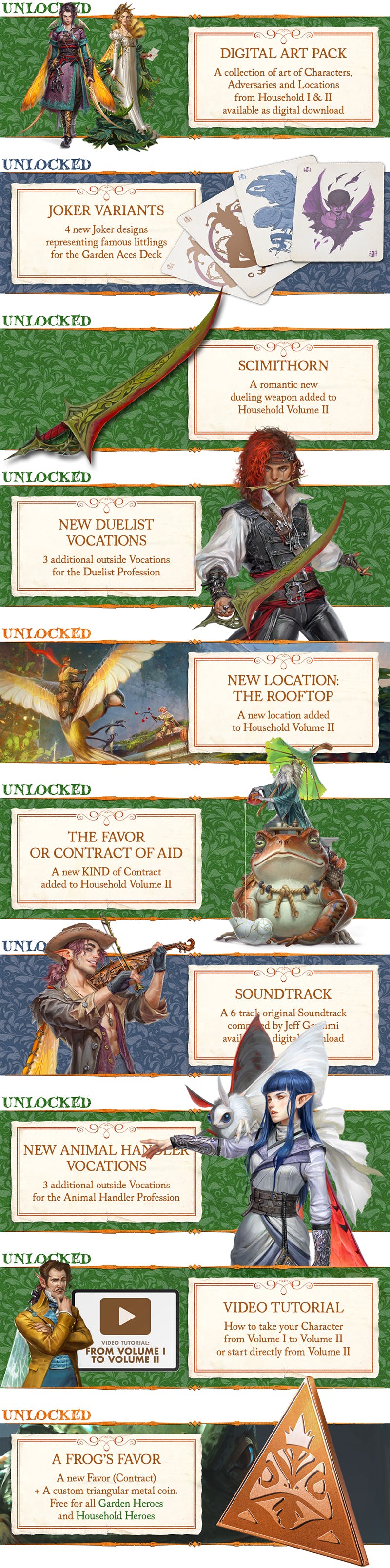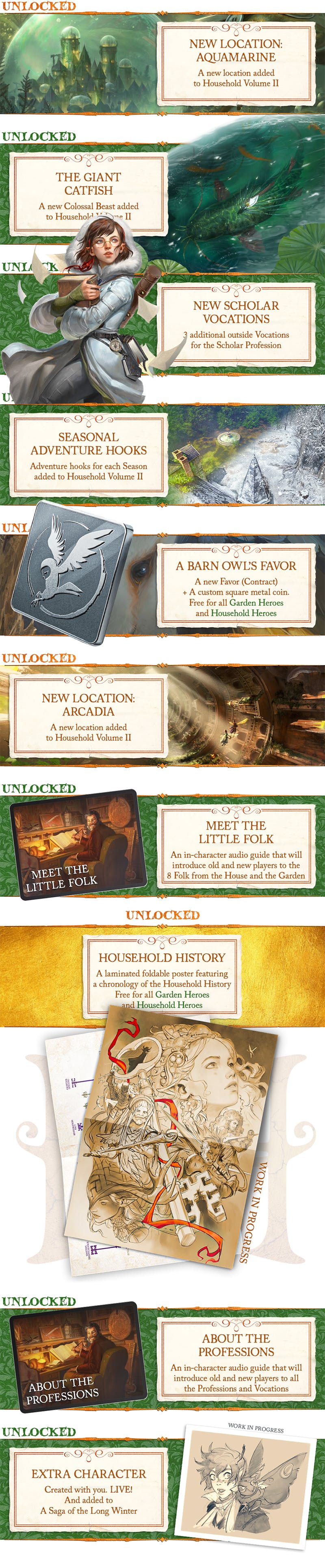 Finally, Household Volume II will bring 3 additional Vocations for each of the existing Profession, and a brand new Profession: the Wayfarer