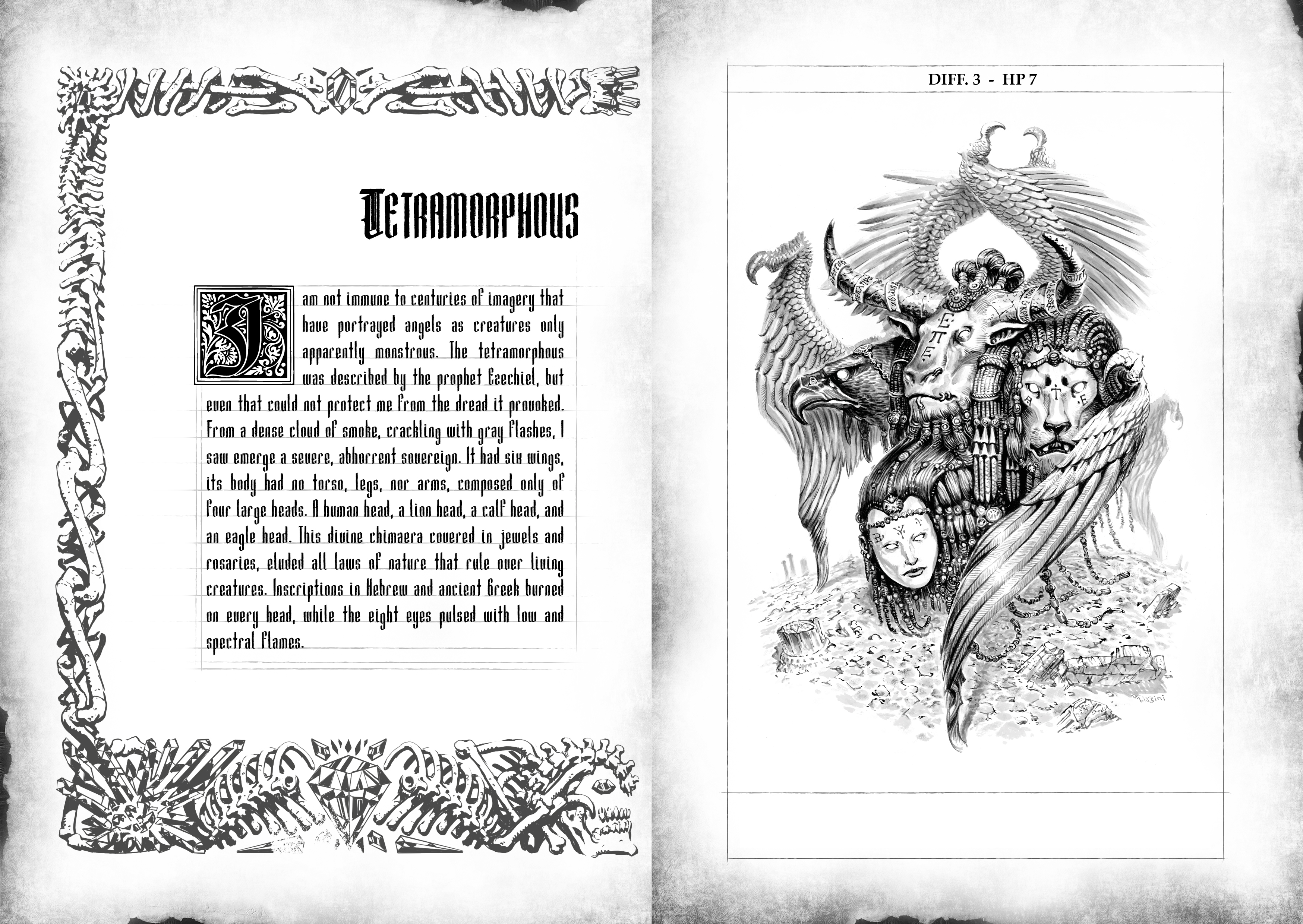 Some of you may recognize that this Tetramorphous is NOT an original design. In fact, it comes directly from APOCALISSE: John's guide to the Armageddon, a 5E supplement imagined and written by 2LM, Memento Mori author Marco B. Bucci, and Acheron Games.
