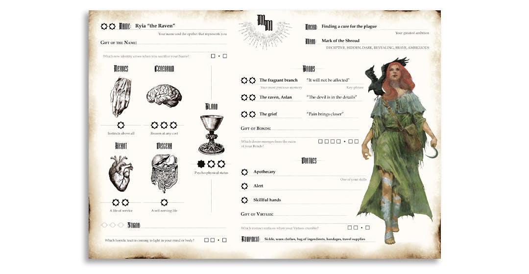Memento Mori has an original game system created to highlight the process of corruption and transformation undergone by the characters.
