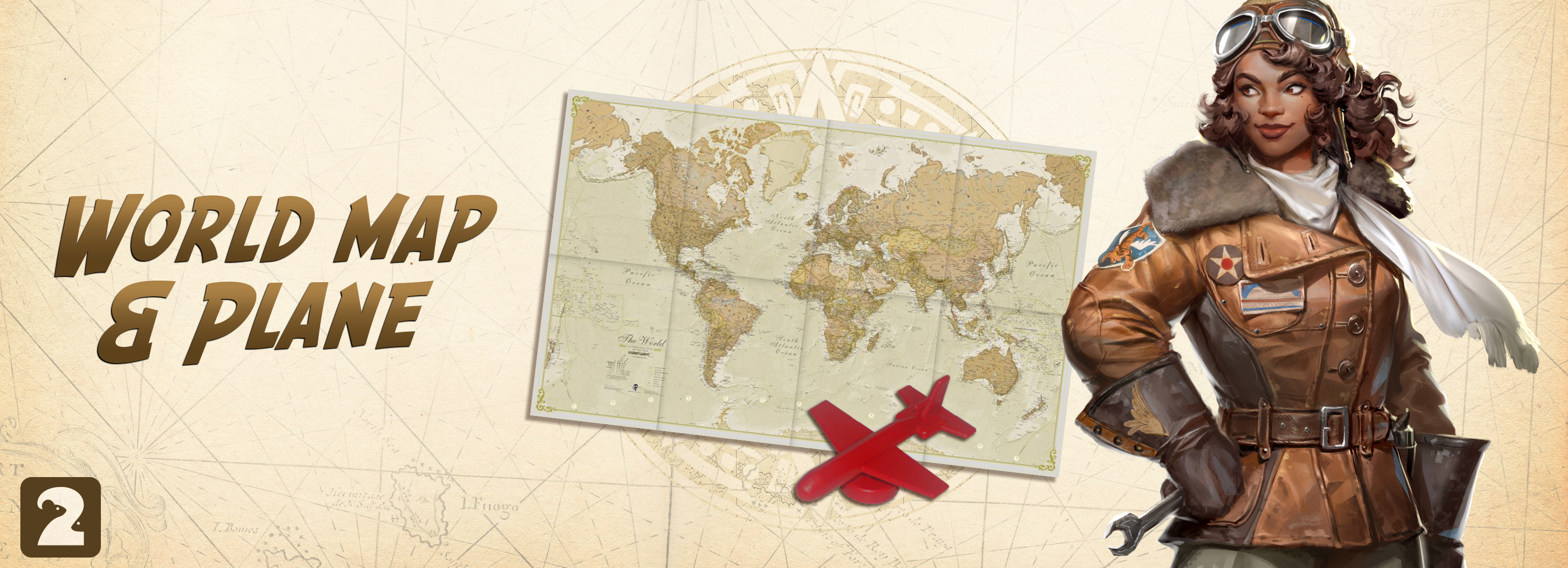 At 300.000 € we will unlock not only a big vintage-looking Map of the World, but also a red little Plane token to mark your location... And to move around on the map making childish plane noises while following an imaginary red dotted line.