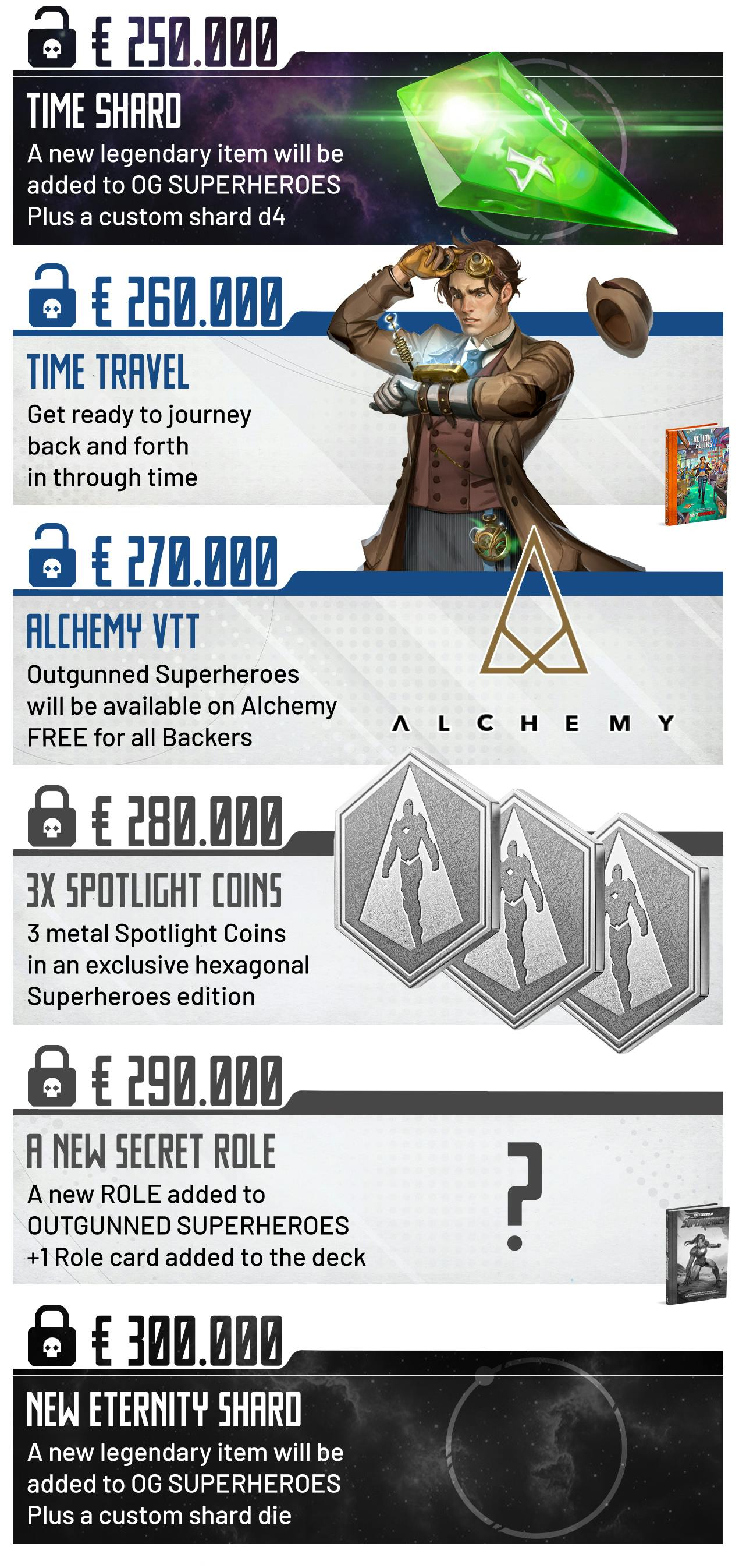 280.000 - 3x SPOTLIGHT COINS - LOCKED 3 hexagonal metal Spotlight Coins FREE for every Superhero and Mightiest Hero pledge levels. This will be in addition to the Spotlight Coin you might already have for being an Early Bird/Returning backer. Once we unlock the Spotlight Coins, they will also be available as Add-On.