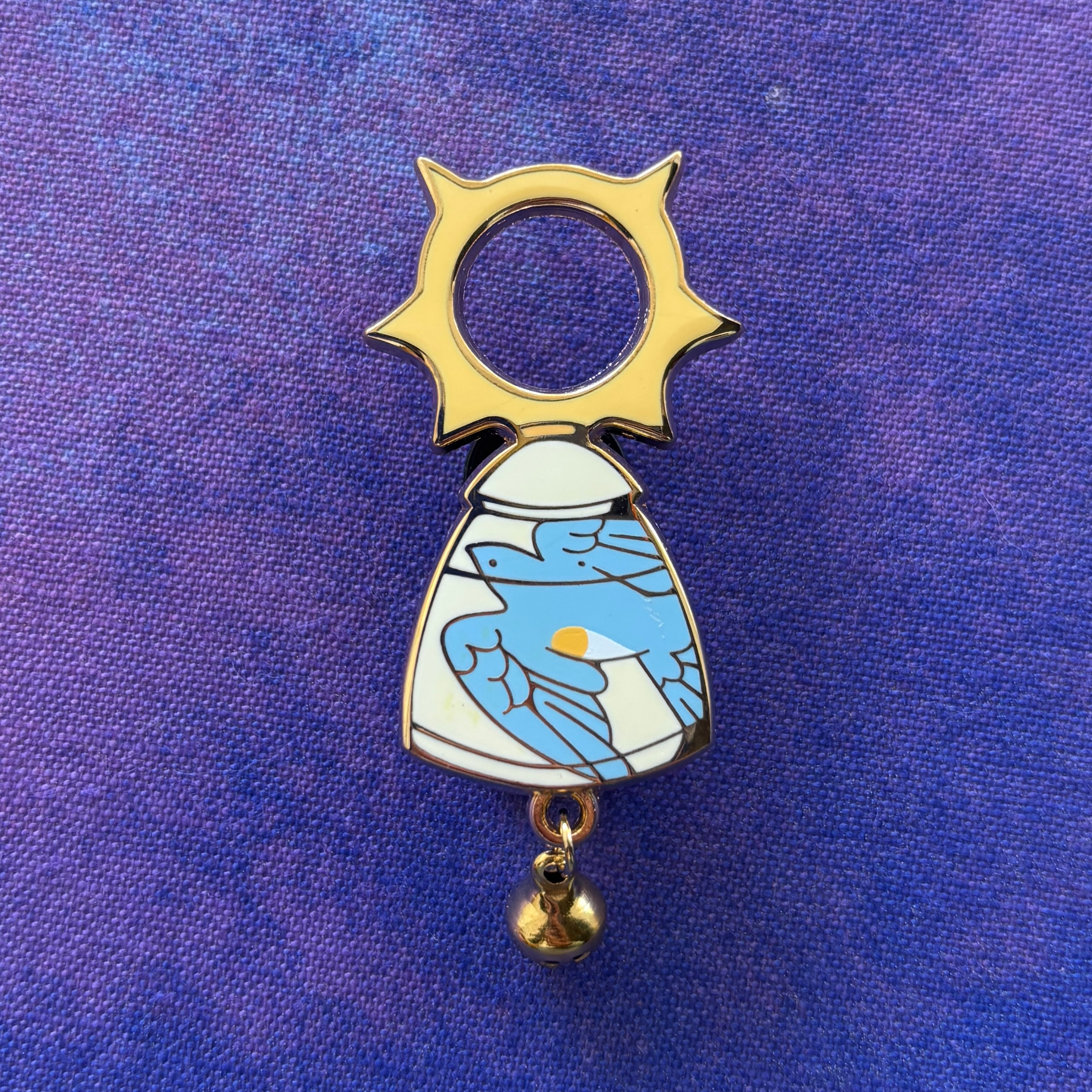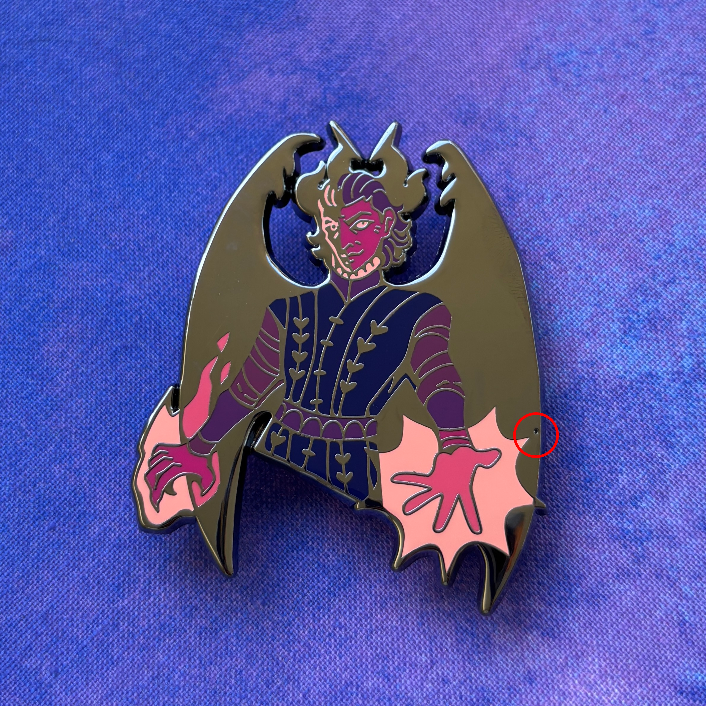 For pins with chrome plating I observed the plating creating a tint in the enamel quite a lot with this batch of pins, in particular with pins with pale enamel. Please keep this in mind and adjust your selections if this bothers you. I tried to sort the pins so backers will get the best of the batch but this sort of tint will not be considered a flaw since it's across all the chrome plated pins.