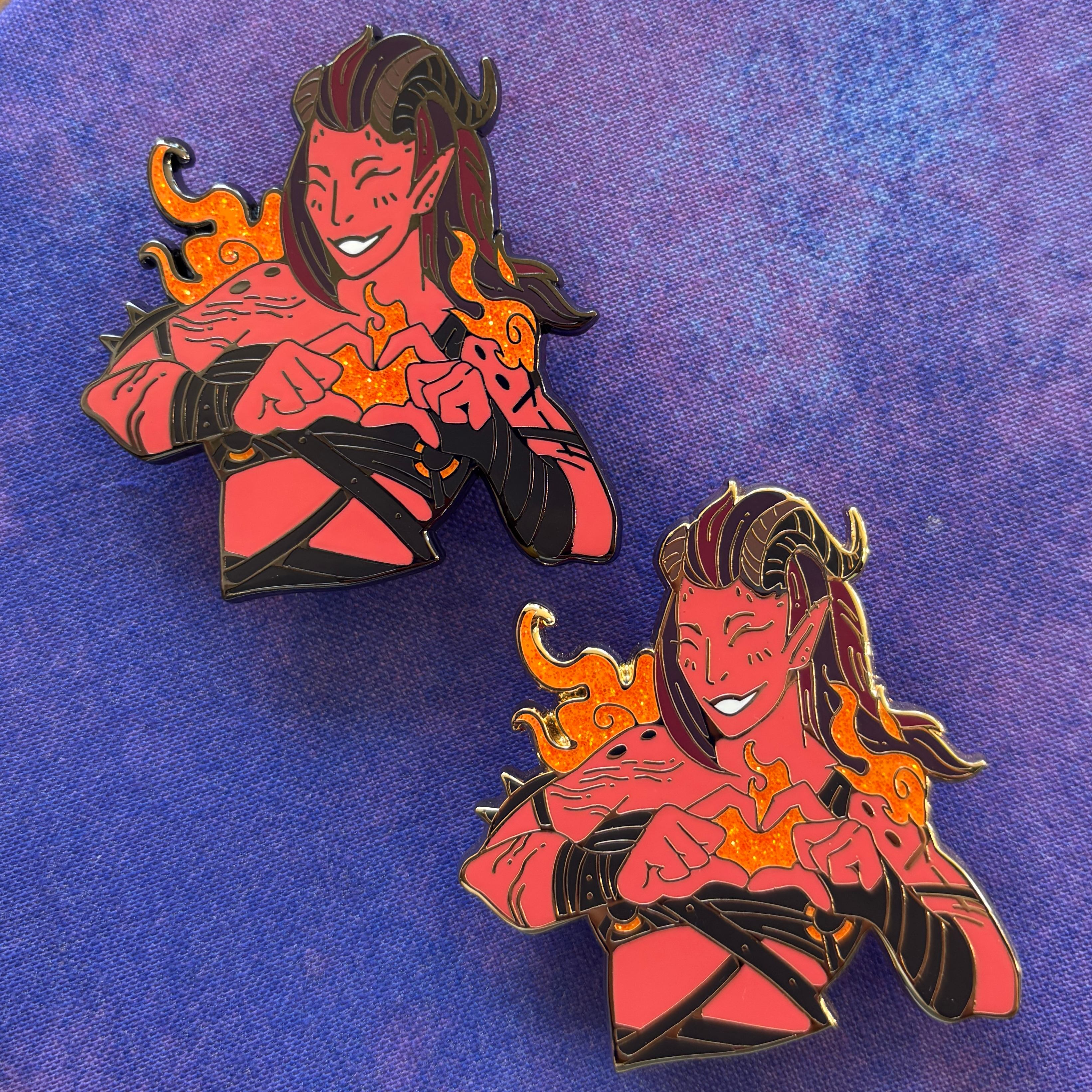 I also made a few sticker sheets of the BG3 Cat Companions and added some leftover Cyberpunk Oni pins, a limited quantity of each is available in the Addons section. There's also listings for miscolored pins (read on for more details).