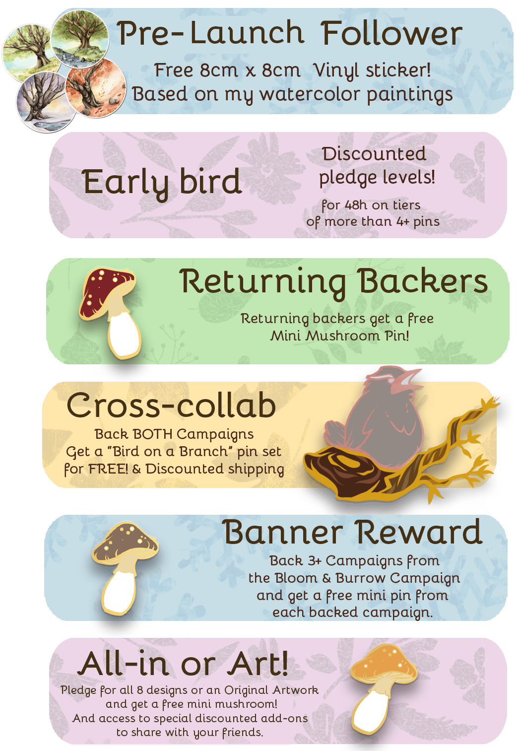 I'm also attempting to make four watercolour paintings to go along with these pins as exclusive rewards!