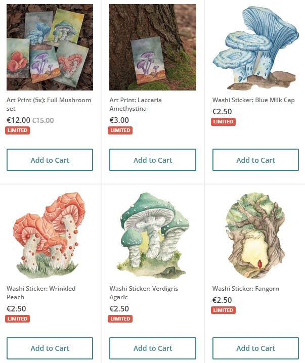 I have also added some new stickers, based on my mushrooms and other existing artwork! These are 2" Washi Stickers, so perfect for journalling.