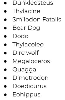 Dunkleosteus, Thylacine, Smilodon, and Bear Dogs are our 28" this time around, everyone else is 18"