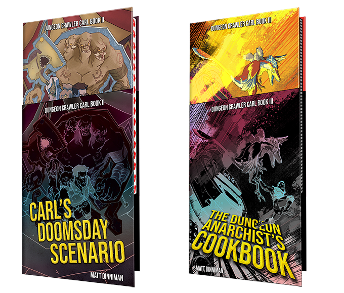 Yet another auspicious day in a fairly auspicious month... The Dungeon Crawler Carl Kickstarter campaign for signed & numbered limited editions of Carlโs Doomsday Scenario and The Dungeon Anarchistโs Cookbook is now live! These bad boys will have reverse holo dust jackets and feature at least five full page tip-in illustrations plus endsheets featuring art by both Luciano Fleitas and Ondลej Hrdina along with a ton of spot illustrations by artist Billy Blue. If you missed out on the first campaign, donโt worry, you can still get a matching special edition of book 1 as an add-on!