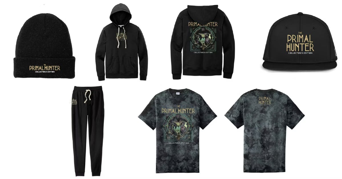 We'll be opening up the merch store next week, and you can see all of the Primal Hunter goodies we've been working on. This store is for backers only, so every piece is exclusive. You won't be able to get these items anywhere else. More details to come, so stay tuned!