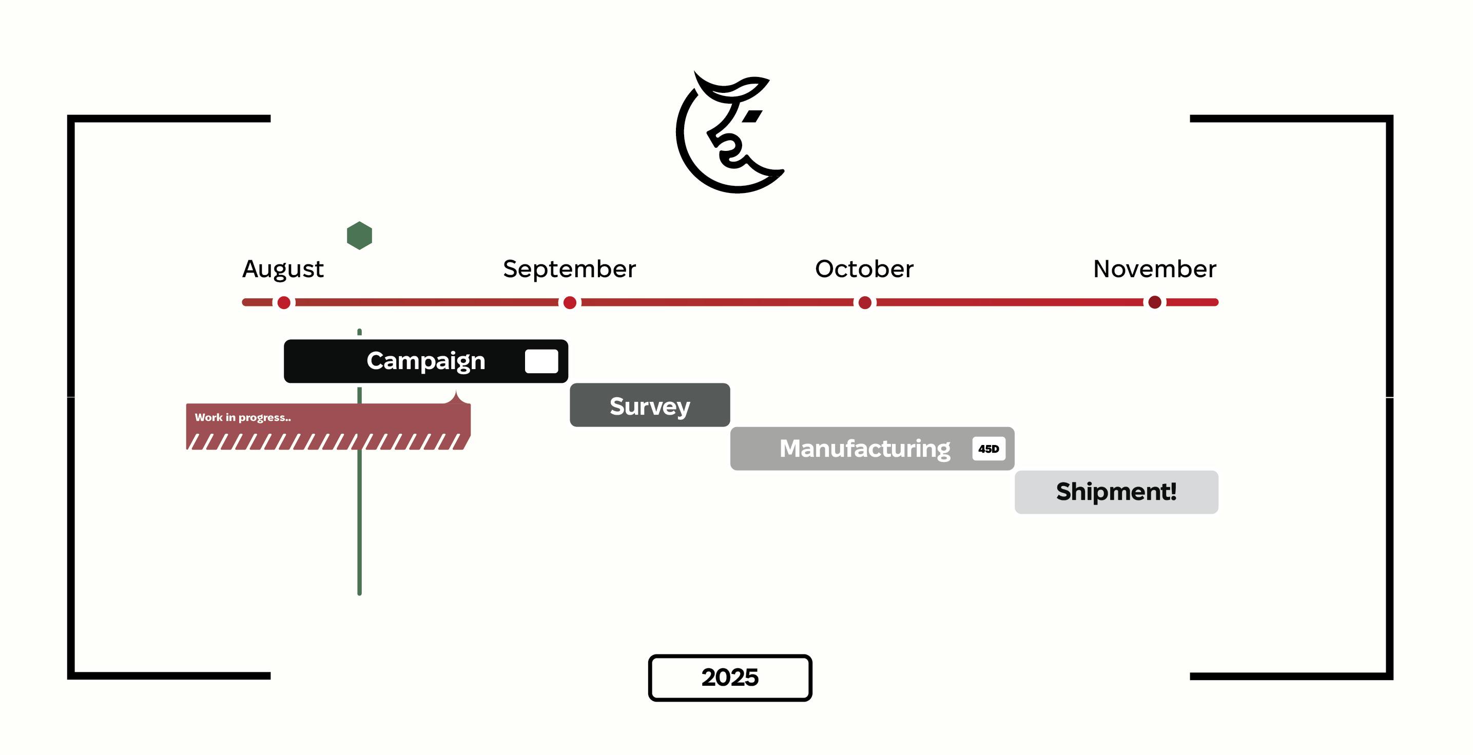 Once the campaign is complete, surveys will be sent out for you to select your preferred designs. You'll also receive regular updates on production and fulfillment progress.