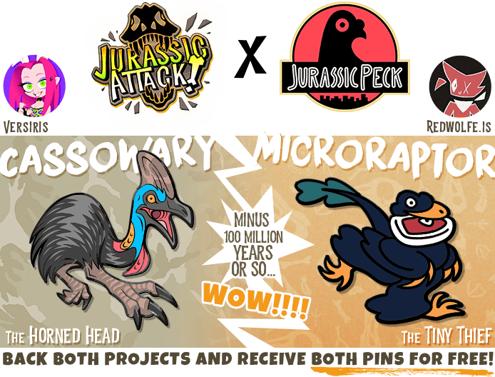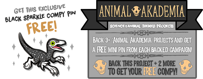 If you're pledging to multiple different Pintopia projects make sure to take advantage of cross-collab freebies! My two freebies are the BLACK SPARKLE COMPY and the CASSOWARY pin! You can get both of these FREE (+ even more pins from other artists!) by backing multiple campaigns! They will be available separately after the campaign, but of course, they won't be free anymore!